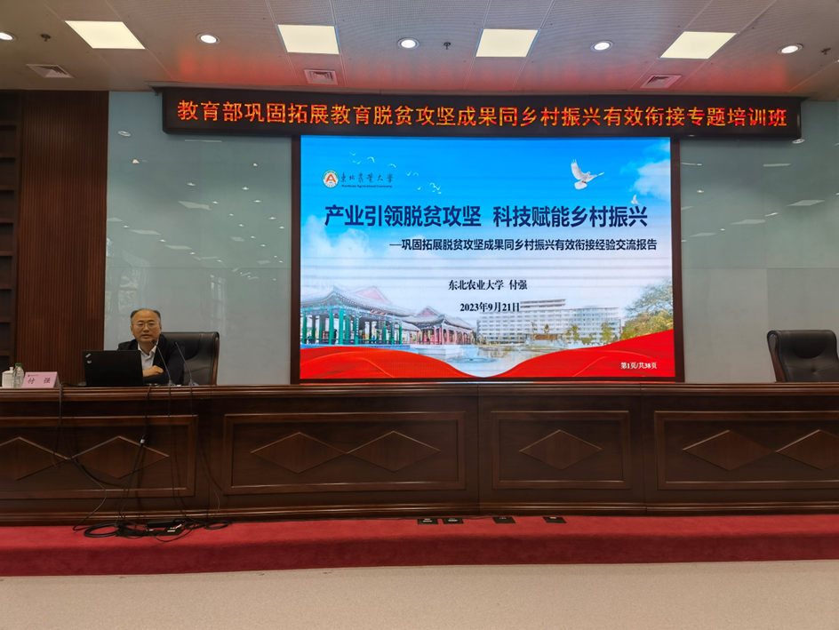 为深入学习贯彻党的二十大精神和习近平总书记关于教育、“三农”工作的重要论述,落实党中央、国务院关于实现巩固拓展脱贫攻坚成果同乡村振兴有效衔接的工作部署,交流研讨乡村振兴工作方式方法和典型模式,提升教育战线干部推动乡村教育振兴和教育振兴乡村的能力和水平,教育部举办了巩固拓展教育脱贫攻坚成果同乡村振兴有效衔接专题培训班。9月21日上午,校长付强为来自全国教育系统、部属高校及部省合建高校承担定点帮扶或乡村振兴工作的130名学员作了题为《产业引领脱贫攻坚科技赋能乡村振兴》的报告。