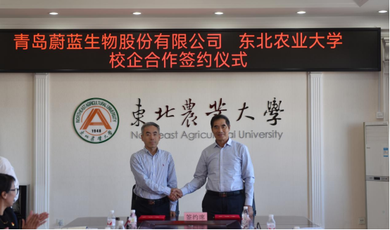 为高效发挥校企双方协同创新优势,加快高层次专业人才培养,推动科技成果快速转化,9月21日上午,东北农业大学与青岛蔚蓝生物股份有限公司在主楼604室举行校企合作协议签约仪式。青岛蔚蓝生物股份有限公司名誉董事长黄炳亮,技术委员会轮值主席、疫苗技术中心首席科学家徐宏军,酶制剂技术中心首席科学家王华明,化药技术中心首席科学家张岩,国家动保工程中心副主任刘元元,动物生物制品实验室副主任魏波,科研管理部总经理李佩佩,我校副校长孙占峰,社会合作与成果转化中心(新农村发展研究院)党总支书记王伟峰,动物医学学院党委书记张铁、行政负责人李金龙,动物科学技术学院正处级组织员栾松,食品学院副院长李良,动物医学学院教授李艳华、张文龙、盛尊来等出席了本次签约仪式。会议由王伟峰主持。