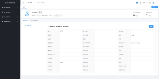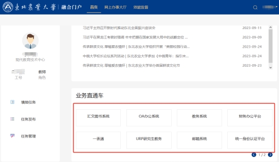 融合门户集成了统一身份认证平台,为师生提供账号密码、微信扫码等多种登录认证方式,力求一次登录在校内已对接业务系统中可无缝切换,解决师生需要记忆“多账号”的困扰,解决业务系统入口分散带来的找入口难、访问难等问题。统一身份认证平台的使用可参照《东北农业大学统一身份认证平台使用指南》。