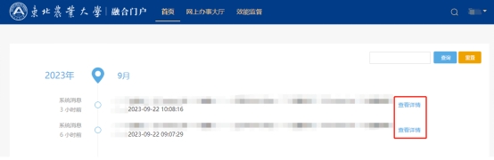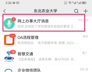 在学校微信企业号“东北农业大学”中,同样可以实时接收消息推送,实时办理相关业务。