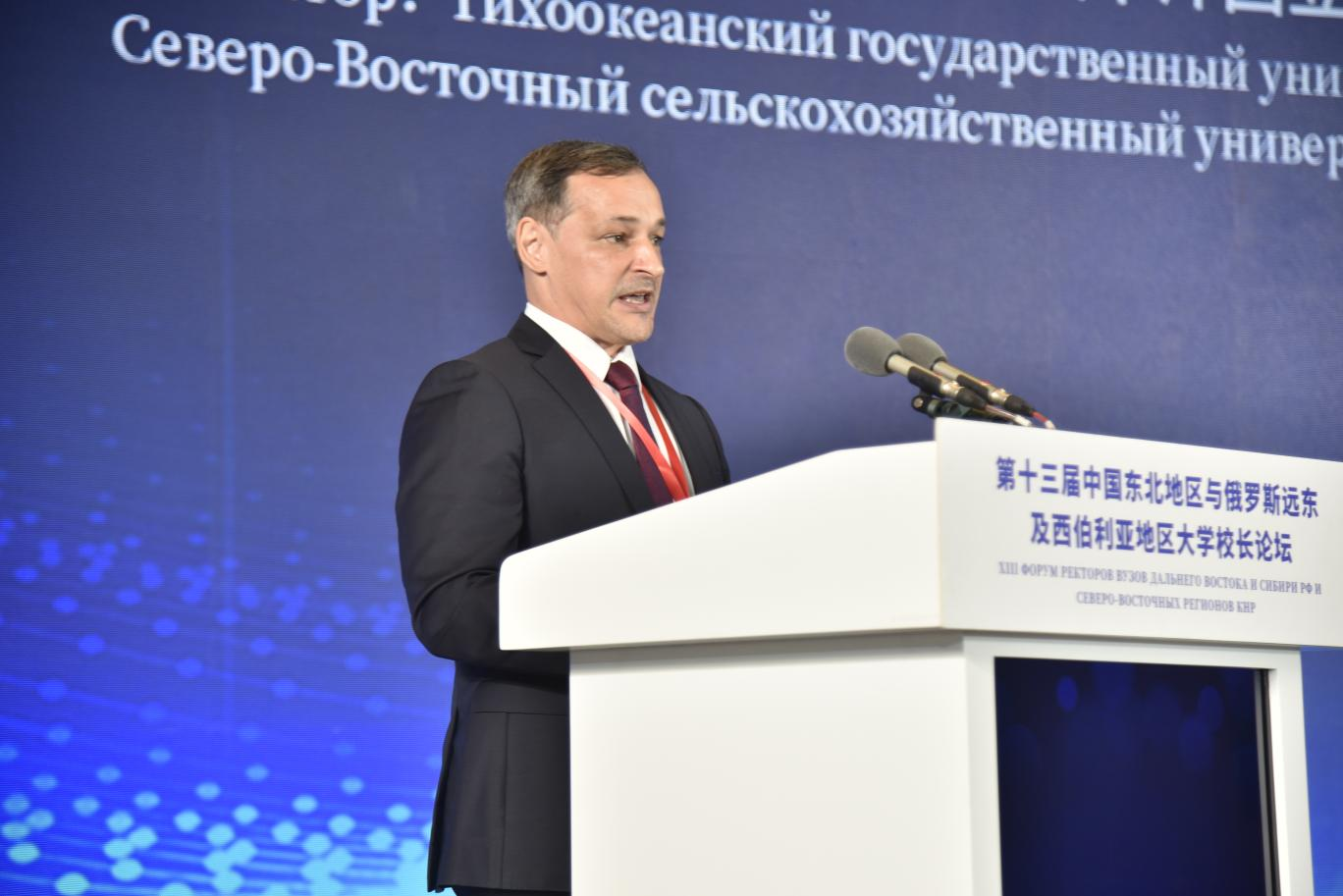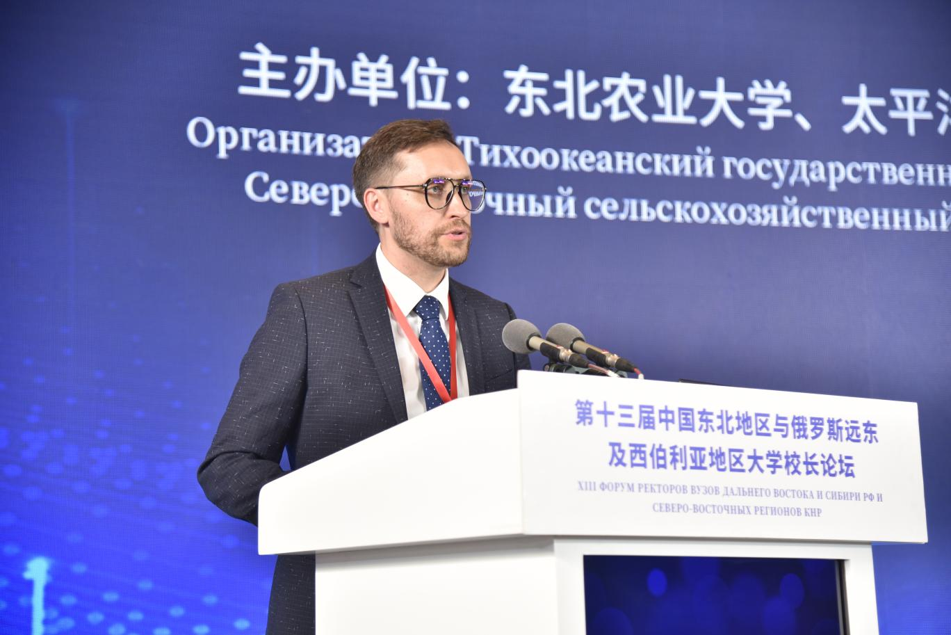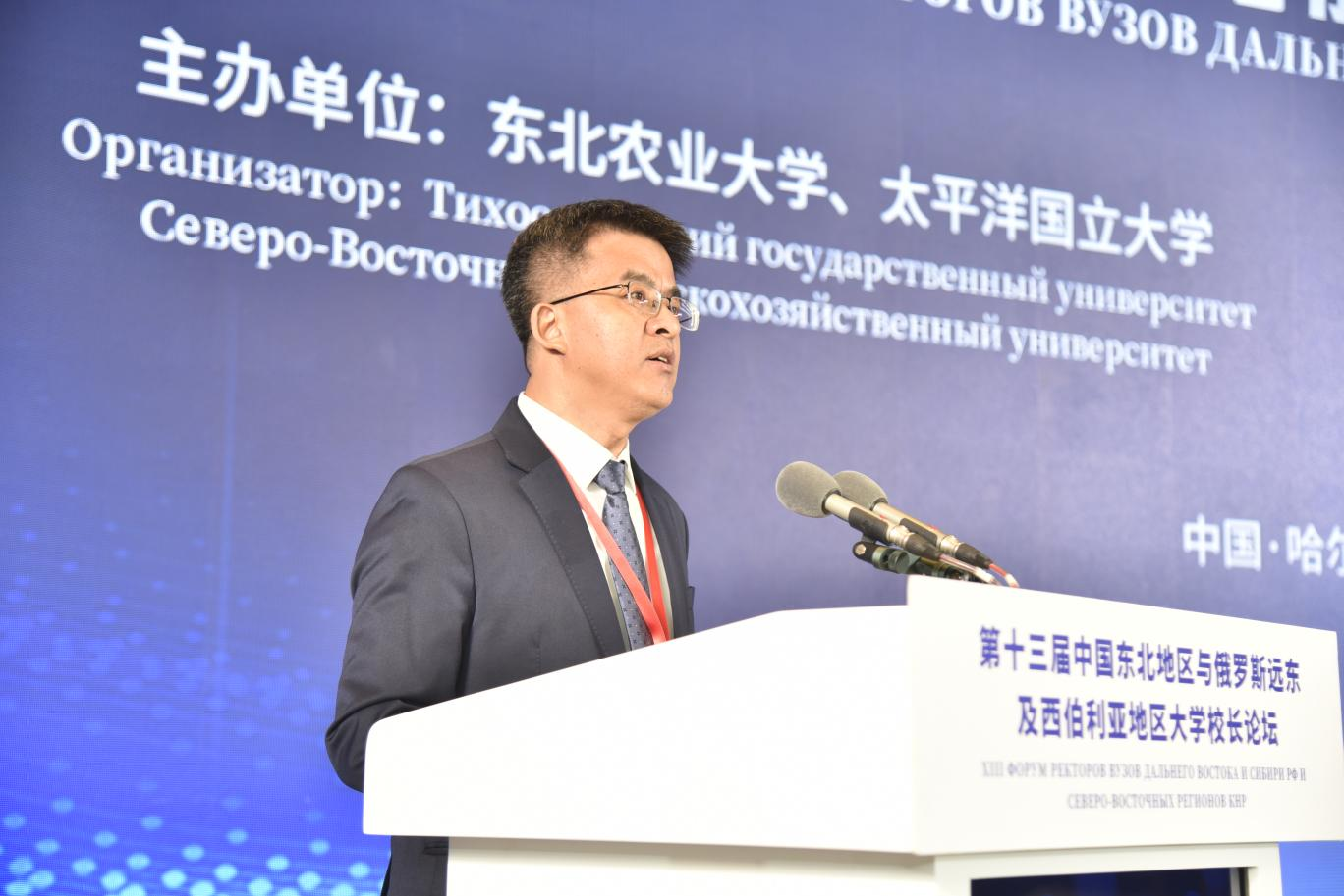 9月26日上午,第十三届中国东北地区与俄罗斯远东及西伯利亚地区大学校长论坛在哈尔滨举行。论坛由中国东北地区和俄罗斯远东及西伯利亚地区大学联盟主办,东北农业大学和俄罗斯太平洋国立大学共同承办,中国教育部、俄罗斯科学和教育部、黑龙江省教育厅共同指导,以“服务中俄两国稳固发展的中俄高校合作伙伴关系”为主题,来自中方的66所高校和来自俄罗斯的26所高校参加,联盟内外中俄高校210位来宾出席。论坛开幕式由东北农业大学副校长刘竹青主持。