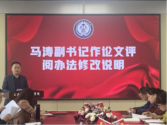 学院党委副书记马涛作《2023公共管理与法学院专业学位硕士研究生学位论文评审办法》修订的说明,并宣布学院对优秀导师的奖励决定。他表示,学院全体导师要多注重学生身心健康、多注重与学生沟通交流、多注重学生实践环节安全教育。