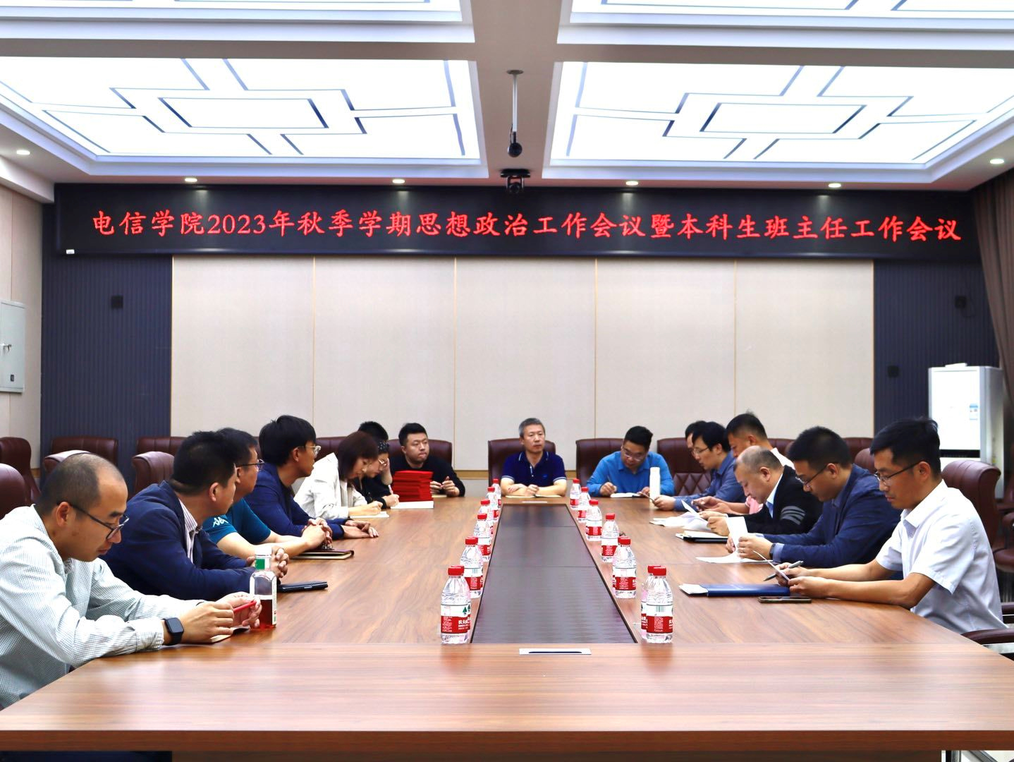 9月27日下午,电气与信息学院在电信楼219召开2023年秋季学期学院思想政治工作会议暨本科生班主任工作会议,学院领导班子成员、党支部书记、本科生班主任参加会议,会议由学院党委副书记汪文斌主持。