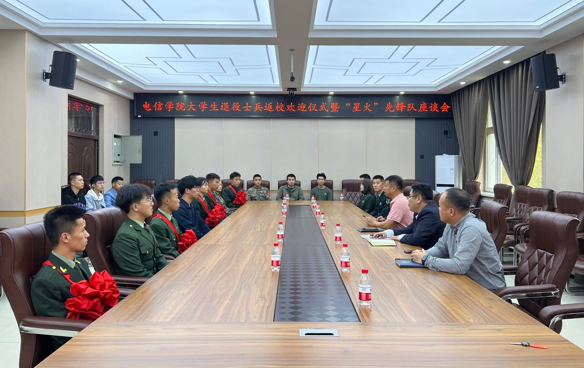 为深入学习贯彻习近平新时代中国特色社会主义思想,强化退役学生士兵思想政治引领,鼓励他们继承和发扬军人优良传统,激发爱国热情和爱校荣校精神,发挥骨干带头作用,9月28日中午,电气与信息学院在电信楼219室举行大学生退役士兵返校欢迎仪式暨“星火”先锋队座谈会,学院党委副书记汪文斌与学院辅导员参加了座谈会,会议由学工办主任杨森森主持。