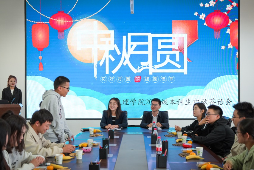 在中秋佳节来临之际,文理学院举办留校学生中秋茶话会,2023级新生辅导员朱泽启、何玉,部分假期留校的省外学生、少数民族学生、家庭经济困难新生参加活动。