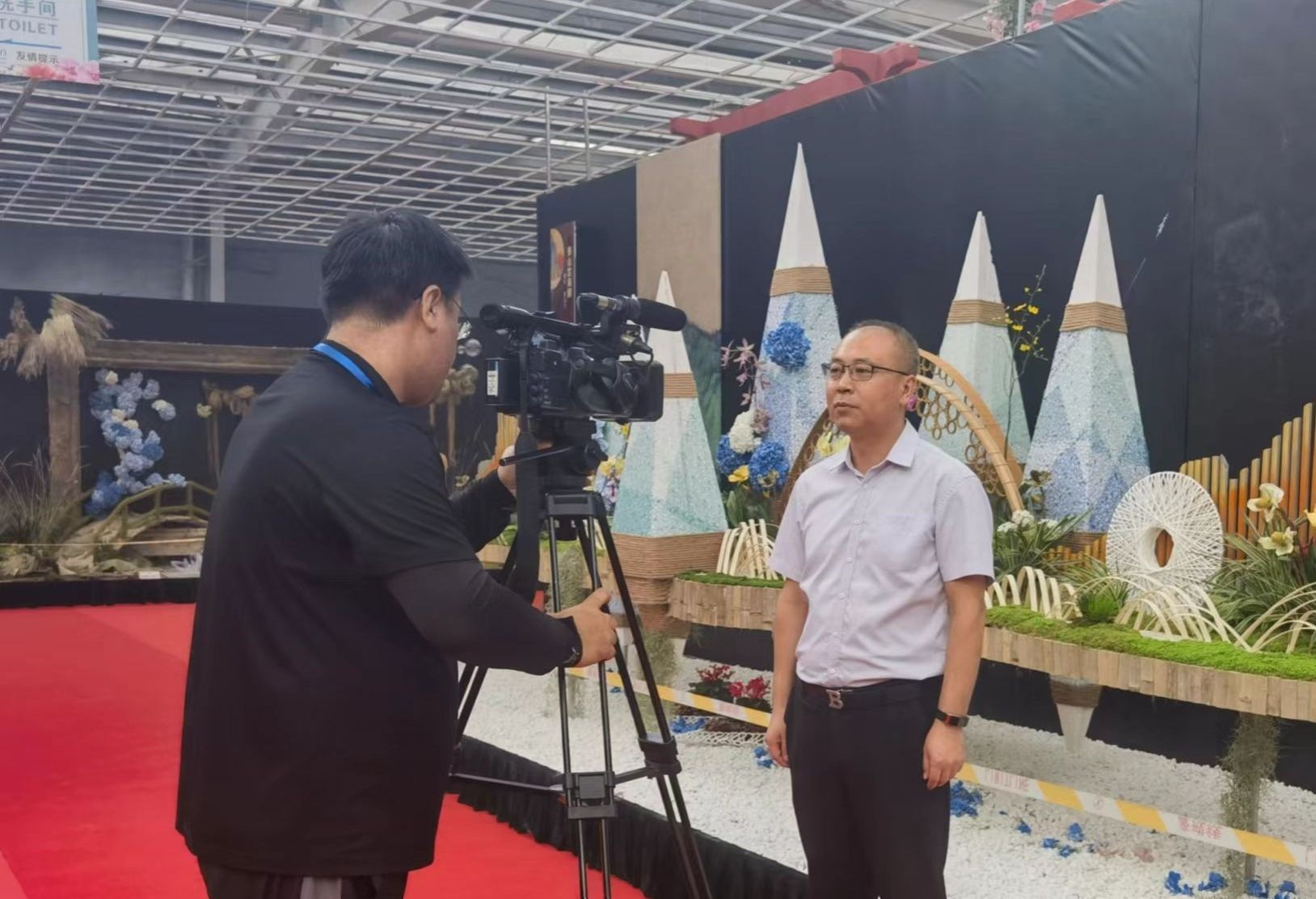 开幕式后,王傲雪一行参观了花博会现场,并接受青州电视台采访。他表示,本次花博会品类丰富,不仅展示了花卉本身的艺术,也融入了现代电子技术、美术艺术,是多学科结合的展会。下一步园艺学院将充分发挥人才优势和科技优势,与青州在人才培养、科学研究、技术创新、社会服务等方面深度合作。
