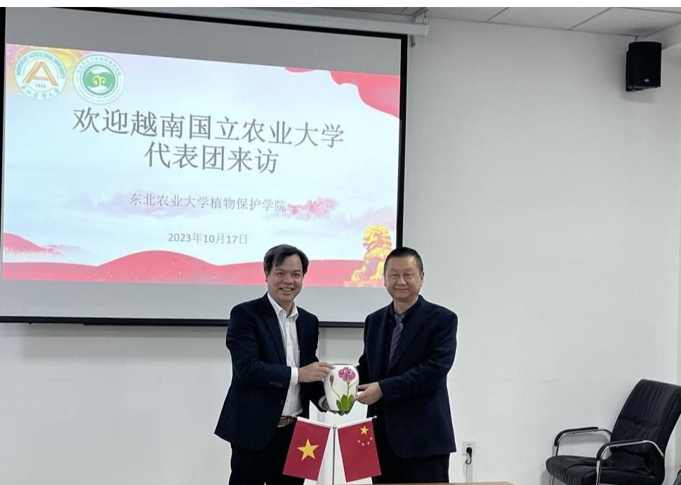 10月17日,越南国立农业大学代表团赴东北农业大学植物保护学院进行交流访问,植物保护学院行政负责人樊东、副院长程晓非,教授张艳菊、副教授宋爽,教师刘东、张傲楠,动物科学技术学院教师吕新嘉,东北林业大学副教授孙丽丽、黑龙江大学副教授韩忠民等出席会议。