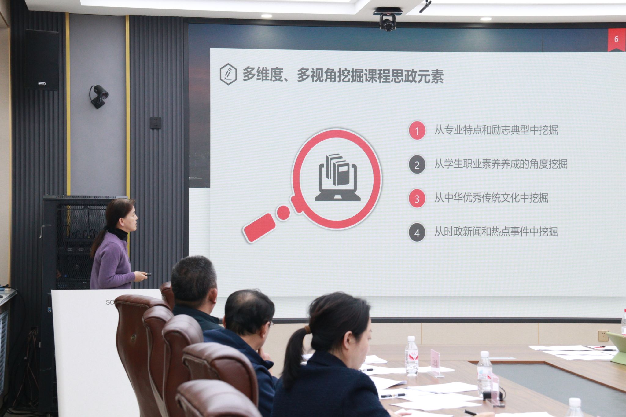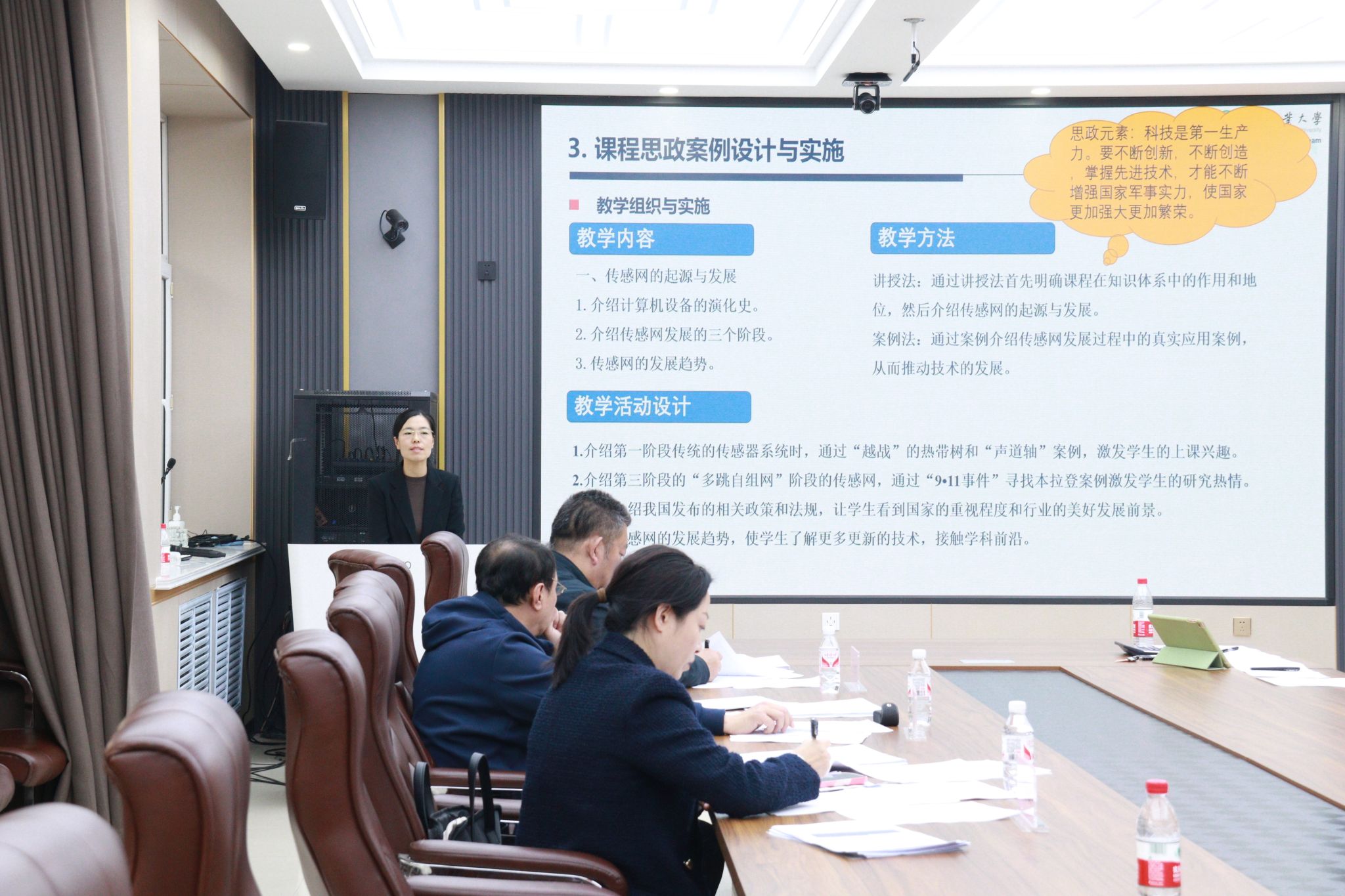 本次竞赛的决赛环节由课程思政教学案例和说课两部分组成,老师们根据抽签依次进行说课展示。评委们结合参赛教师撰写的课程思政教学案例和说课进行综合评价。他们对参赛教师的精心准备和努力付出给予肯定,对选手们的不足之处提出了意见建议。各位评委指出,要将课程思政与专业知识深度结合,深入挖掘思政内容,在深刻理解专业育人目标的基础上融入思政知识,全面提升立德树人成效。