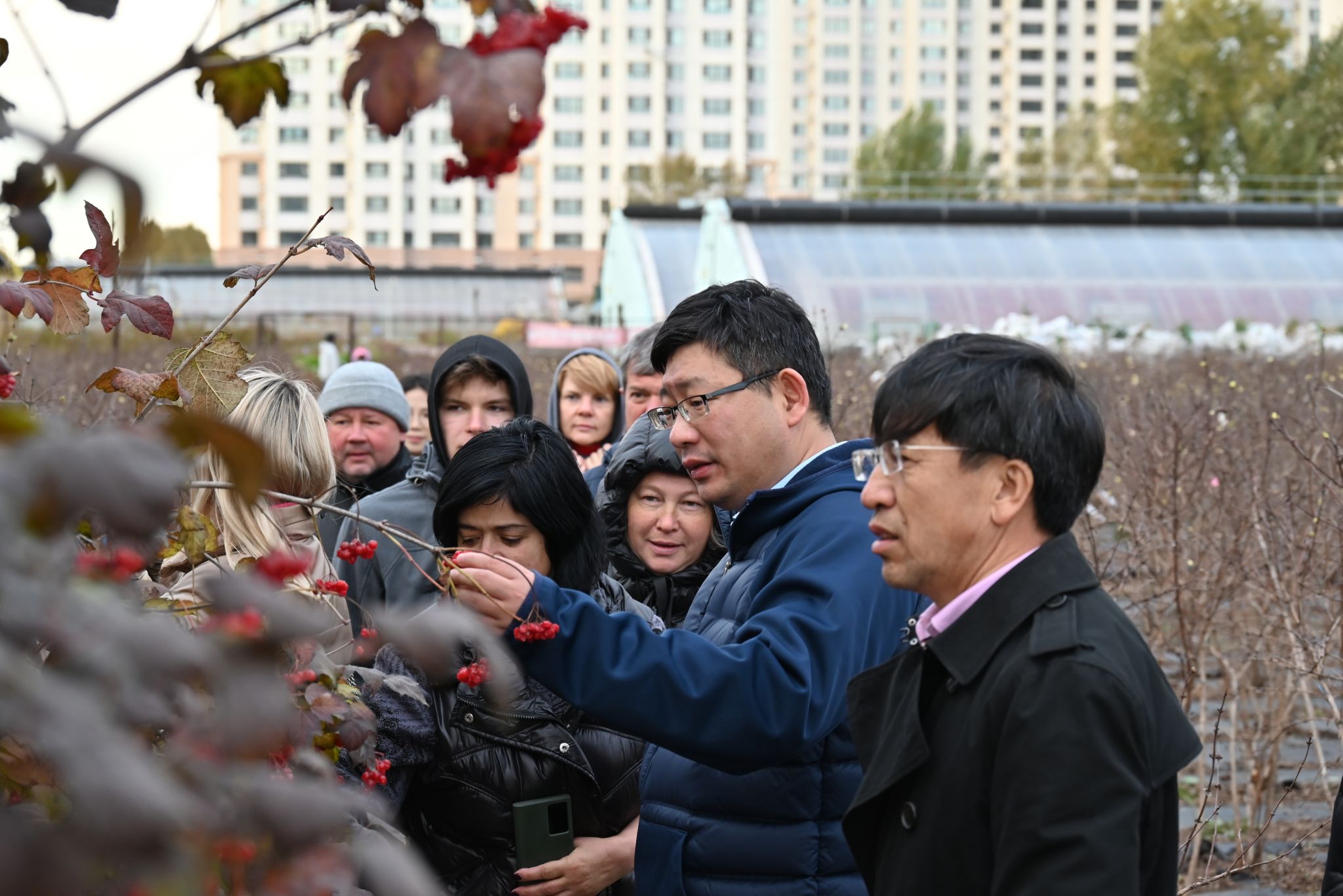 为提高俄罗斯远东地区城市园艺设计水平及园艺园林植物资源利用率,10月20日下午,俄罗斯园艺苗木生产者协会负责人别兹马捷尔内赫﹒亚历山大、俄罗斯犹太自治州州长助理雅科夫列娃﹒连娜塔及协会成员到我校园艺园林学院交流座谈,园艺学院副院长马鸿艳、秦栋,教师霍俊伟、闫永庆、杨国慧、屈淑平、王勇、刘威,马克思主义学院教师顾尔康参与座谈。