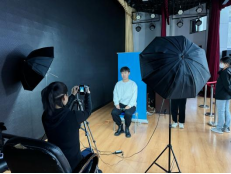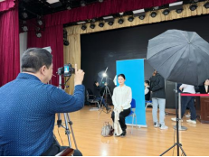 新华社工作人员为我校学生拍摄照片
