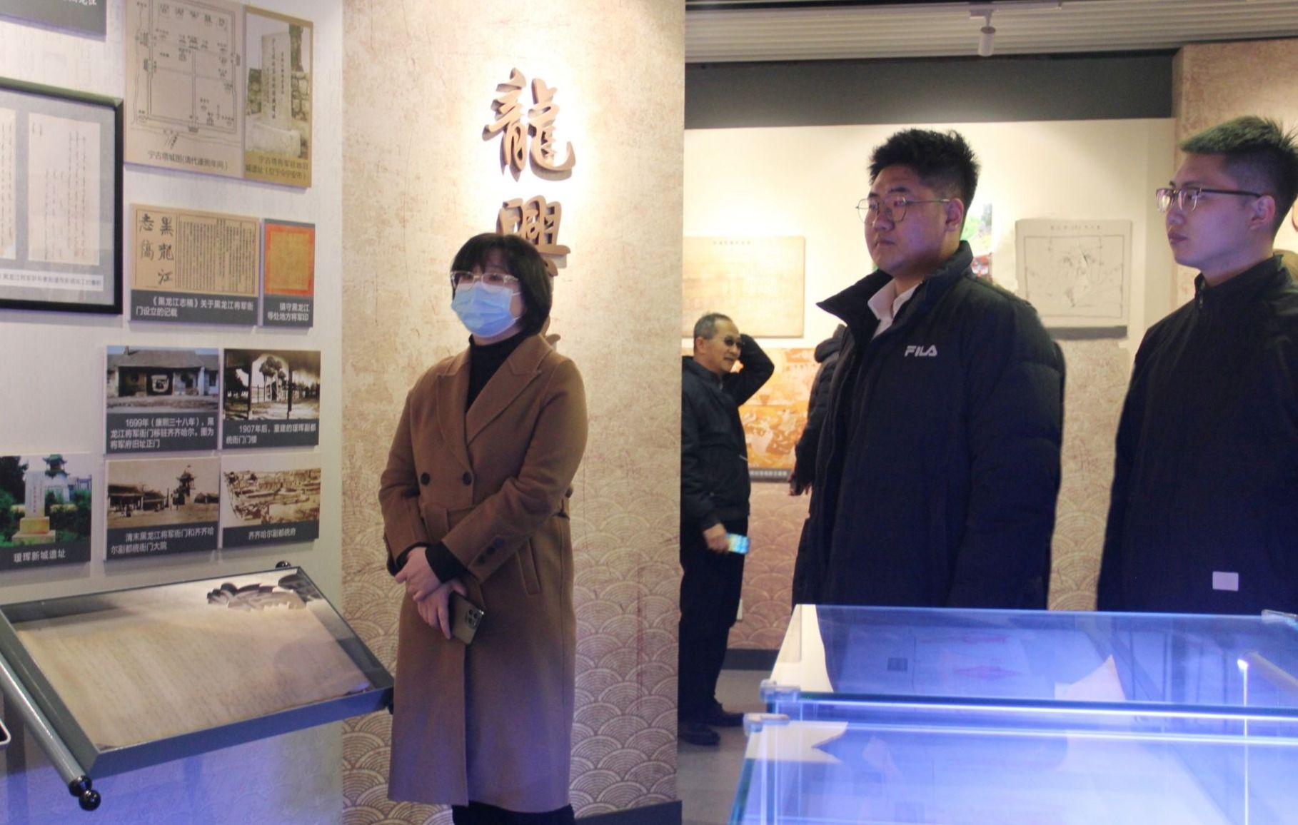 在档案馆工作人员的带领下,大家了解了档案馆馆藏的基本情况和历史档案业务的基础知识。师生跟随讲解员的步伐,依次参观了“北国风光”、“黑水文明”、“鲜卑文化”、“海东盛国”、“金源文化”、“龙兴故地”、“民国风云”、“苦难岁月”、“共和曙光”、“开辟新元”等展厅,随后深入学习了党史、新中国史、改革开放史、社会主义发展史,重温黑龙江翻天覆地的变化,领略历史洪流中龙江文化的底蕴,感受中国共产党领导黑龙江人民前仆后继、艰苦奋斗追求民族解放的奋斗历程。