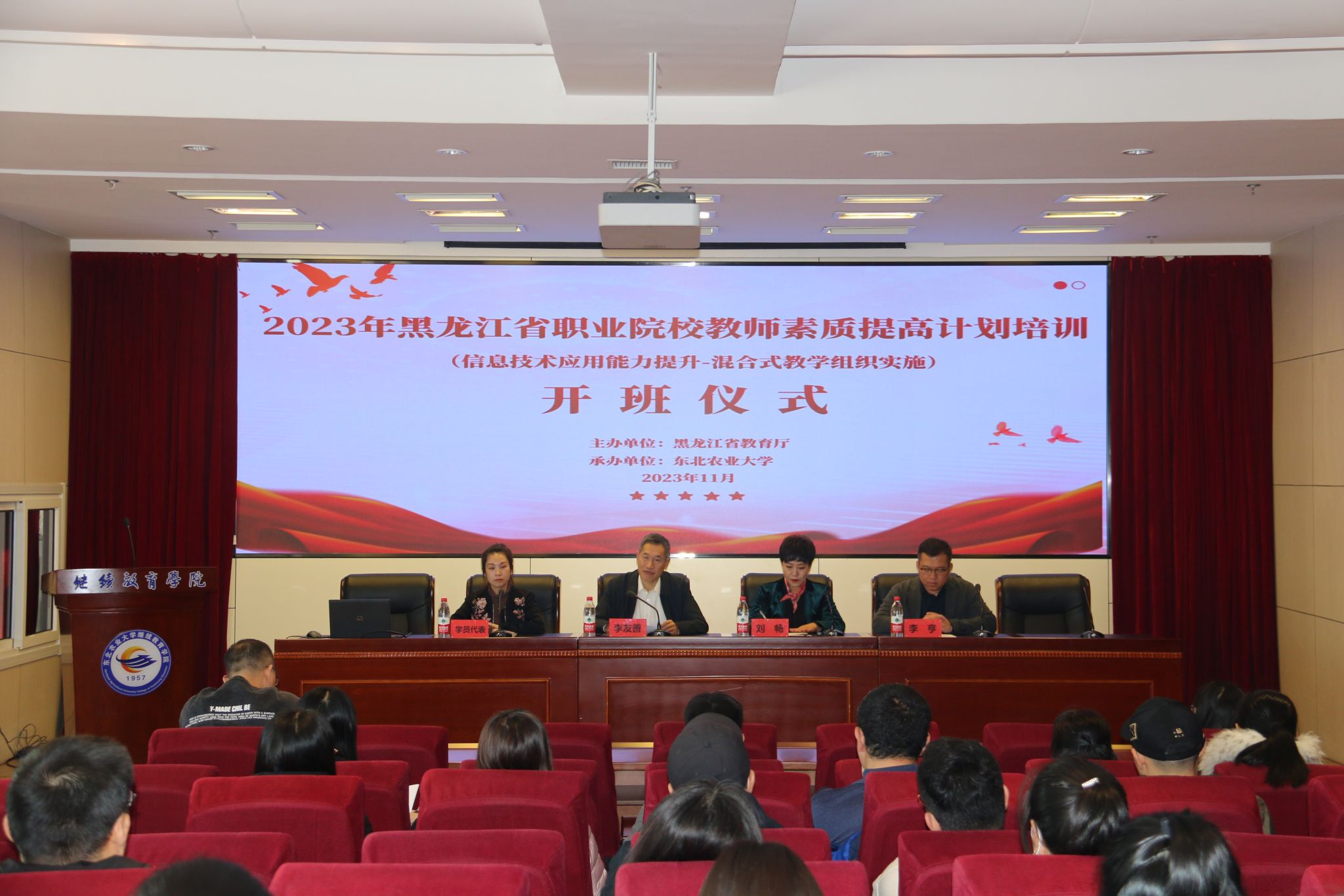 11月7日上午,由黑龙江省教育厅主办,东北农业大学承办的“黑龙江省职业院校教师素质提高计划(信息技术应用能力提升-混合式教学组织实施)培训班”在我校继续教育学院开班。继续教育学院党委书记李友善、院长刘畅,教务处非学历教育管理科科长李亨出席会议,来自我省38个高等职业院校的40位教师参加开班式。开班仪式由李友善主持。