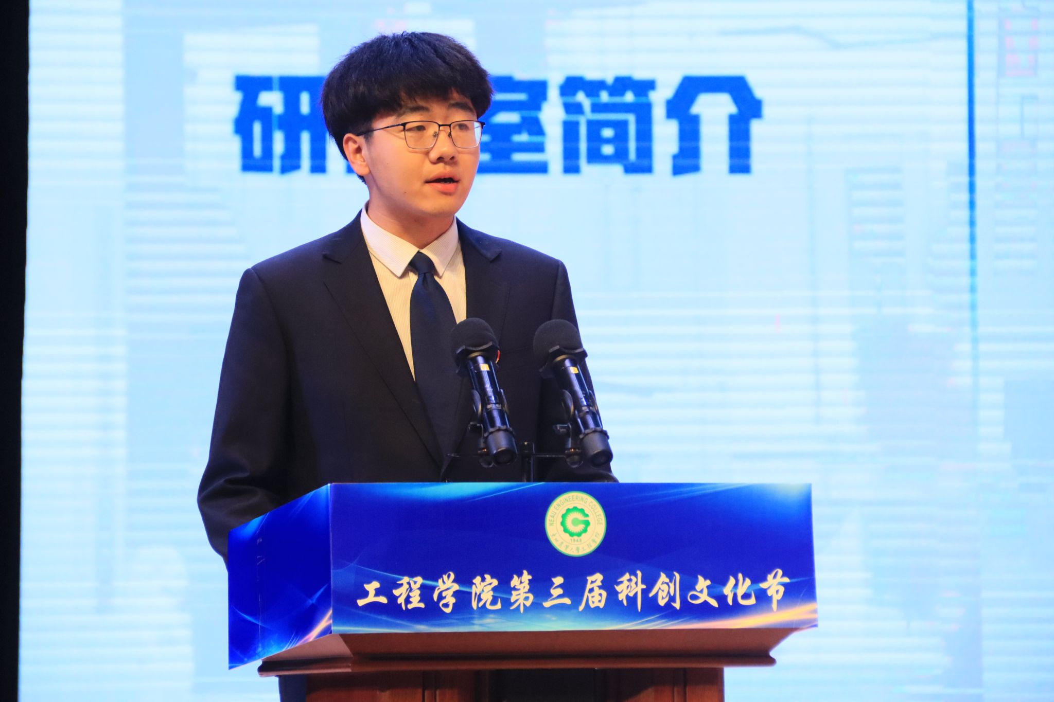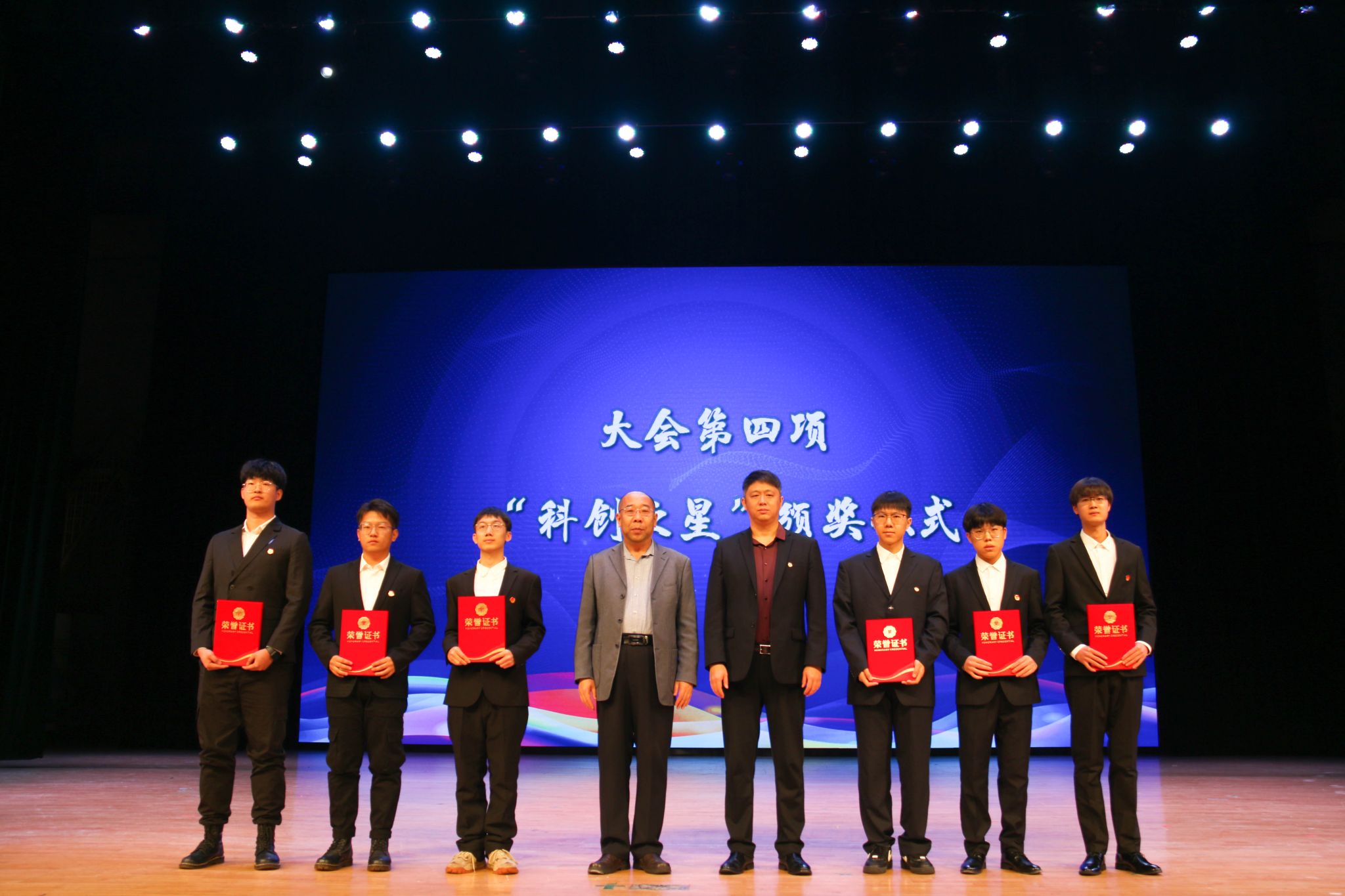 王金峰宣读了2022-2023年度工程学院“科创群体”及“科创之星”获奖名单。臧宏为“科创群体”获得者测控研究室代表颁奖;李卡、黄步海为“科创之星”获得者颁奖。获奖代表杨彦晖分享科创经验并号召全体学生成为科技创新路上的“追光者”。