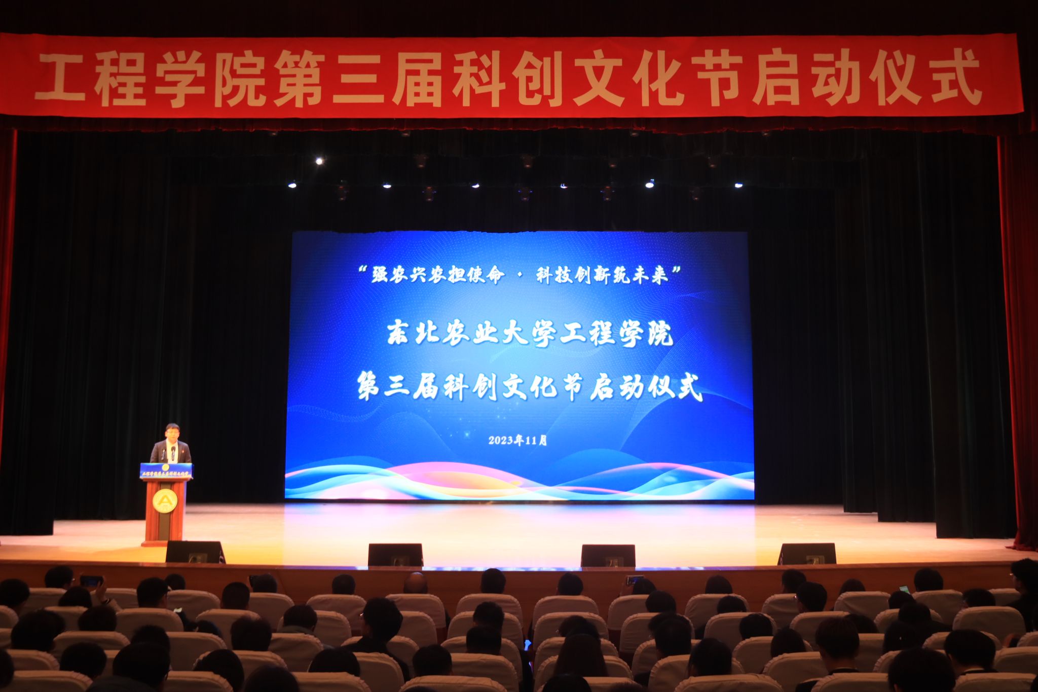为培养大学生科研精神,营造良好校园学术氛围,积极探索创新创业拔尖人才培养新模式,推进大学生素质教育工作向纵深发展。11月9日,工程学院在音乐厅举办第三届科创文化节启动仪式,会议主题为“强农兴农担使命,科技创新筑未来”。校团委书记李卡,学院党委书记黄步海,行政负责人周文琪,校团委副书记焦文静,学院副院长臧宏、王立军、王金峰,学院教师代表、全体辅导员、2022及2023级全体学生参加启动仪式。学院党委副书记孙涛主持启动仪式。