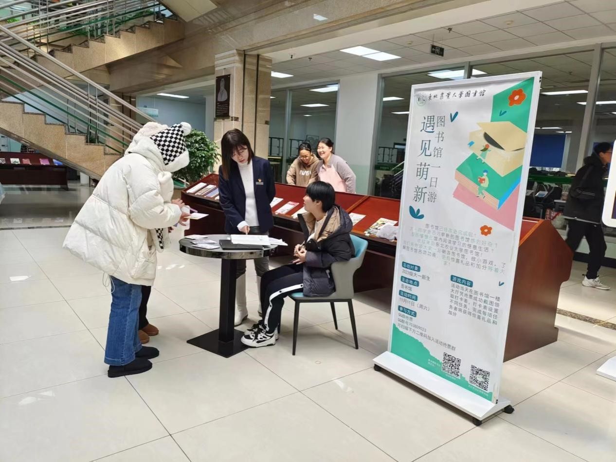 为深入学习贯彻习近平文化思想,更好地发挥图书馆传播知识、推广文化、服务校园的文化育人功能,培养德、智、体、美、劳全面发展的高水平人才,发展好教育科学文化事业,丰富校园精神文明,使2023级新生加快了解图书馆各项功能,感受书香满东农的文化氛围,11月11日,图书馆携手东农读书社、国学社共同举办“遇见萌新,好久不见——图书馆一日游”活动。