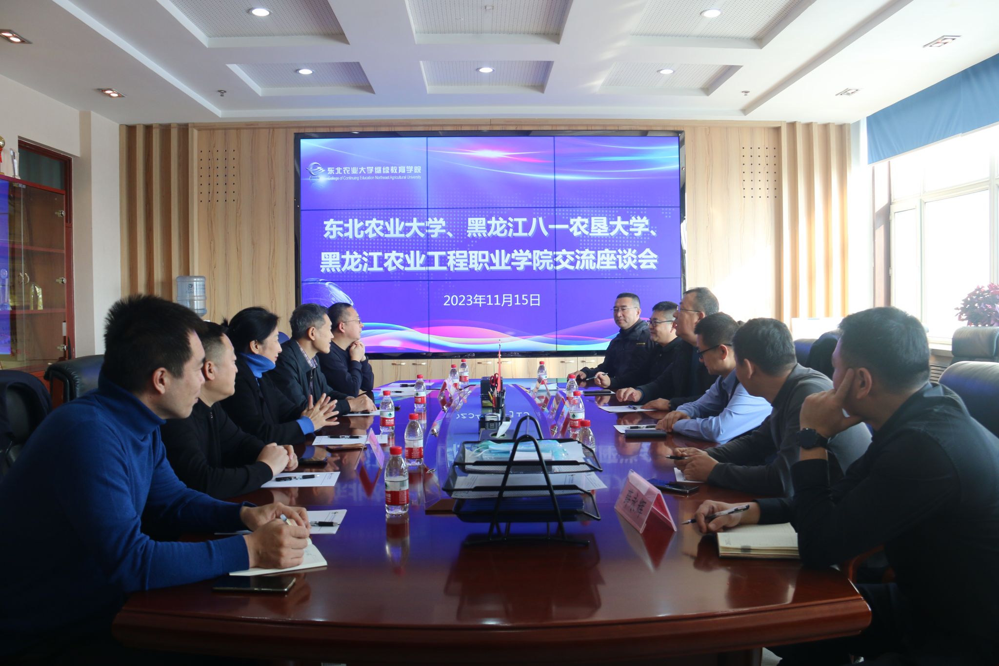 11月15日上午,黑龙江八一农垦大学继续教育学院院长赵旺、计划财务处处长刘野、国有资产管理处处长何飞舟一行到东北农业大学调研交流非学历教育。黑龙江农业工程职业学院继续教育学院院长张峰,东北农业大学计划财务处副处长唐宝,国有资产管理处物资采购科科长曹俊峰,继续教育学院党委书记李友善,副院长白玉华、李伟,以及相关工作负责人员参加了此次交流座谈会。