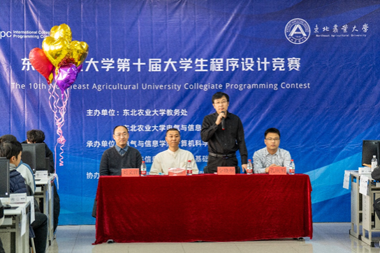 11月19日,由教务处主办,电气与信息学院计算机科学与技术系和计算机基础教学部承办,东北农业大学ACM集训队协办的“东北农业大学第十届大学生程序设计竞赛”在艺术楼130室、216、221、231举行。电气与信息学院副院长李晓明、计算机基础教学部主任刘文洋、计算机科学与技术系副主任付强、孔庆明出席开幕式。