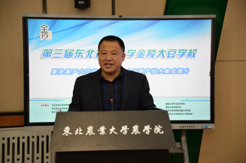 陈庆山详细介绍了举办“金陵”大豆学校的目的、意义以及自第一届金陵大豆学校举办以来取得的突出成效,并提出将金陵大豆学校办成服务大豆产业的“社会服务大舞台、人才培养大平台、学术交流大阵地、文化传承大品牌”预期目标。