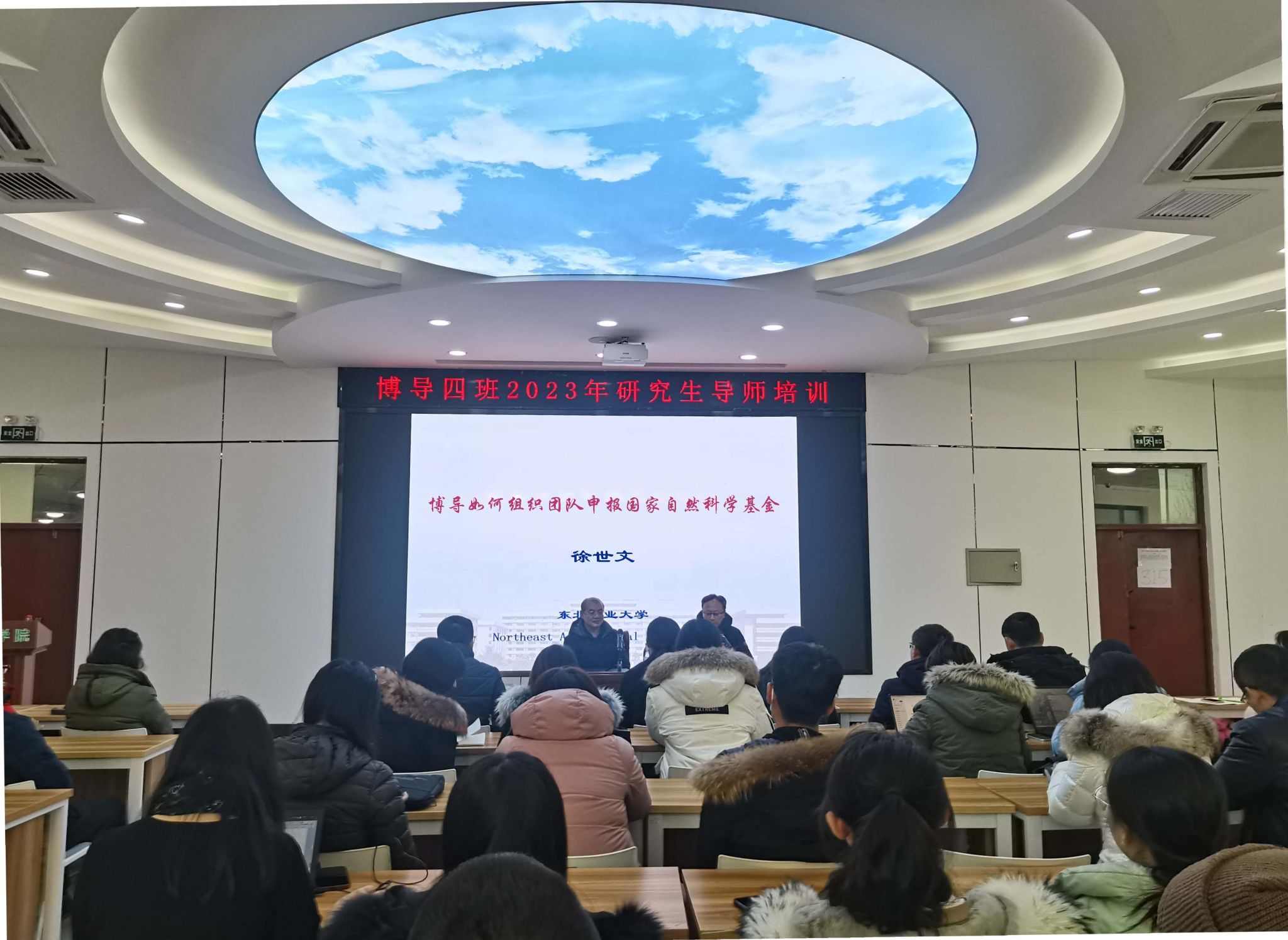 为进一步贯彻落实学校《关于开展“两个队伍”一体化培训暨2023年研究生导师培训工作的通知》有关精神,切实提高研究生导师学术管理能力,11月27日下午,食品学院牵头并针对由生命科学、食品、文理三个学院的博士生导师组成的博导四班全体人员特点,邀请动医学院徐世文教授以《博导如何组织团队申报国家自然科学基金》为题进行专题培训。培训由食品学院院长姜毓君主持。