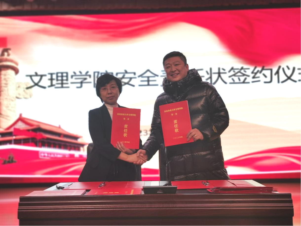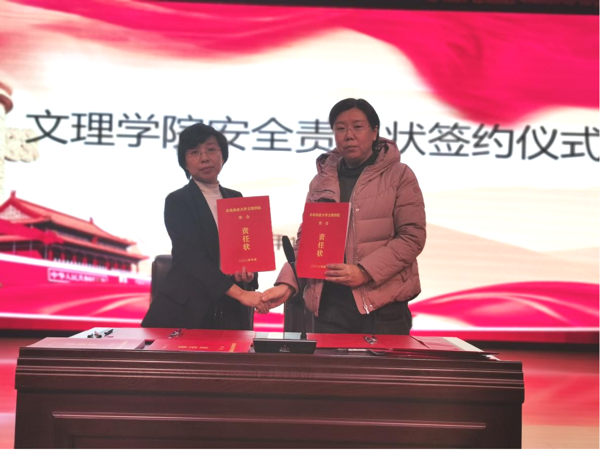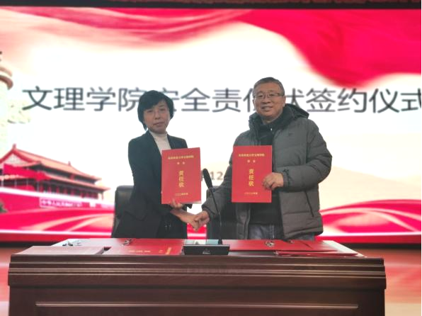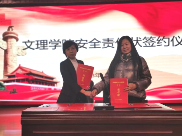 院长付颖代表学院与各系、部、办负责人签署了《安全责任书》,压实安全管理责任。