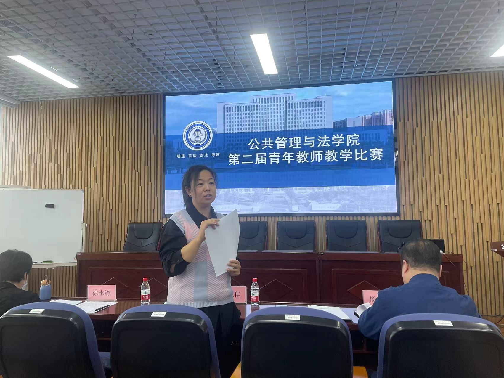 为进一步提高青年教师的专业素养和教学能力,发挥教学比赛对青年教师教学技能提升的促进作用,展示学院青年教师教学风采,公共管理与法学院于12月14日在成栋楼1104室举办了第二届公共管理与法学院青年教师教学比赛。比赛邀请了学校工程学院教授公维佳、生命科学学院副教授徐永清、经济管理学院副教授杨辉担任评委,公共管理与法学院党委书记闫清波、副院长程镝,参赛选手以及部分教师代表参加比赛活动。比赛由学院党委副书记、工会主席马涛主持。