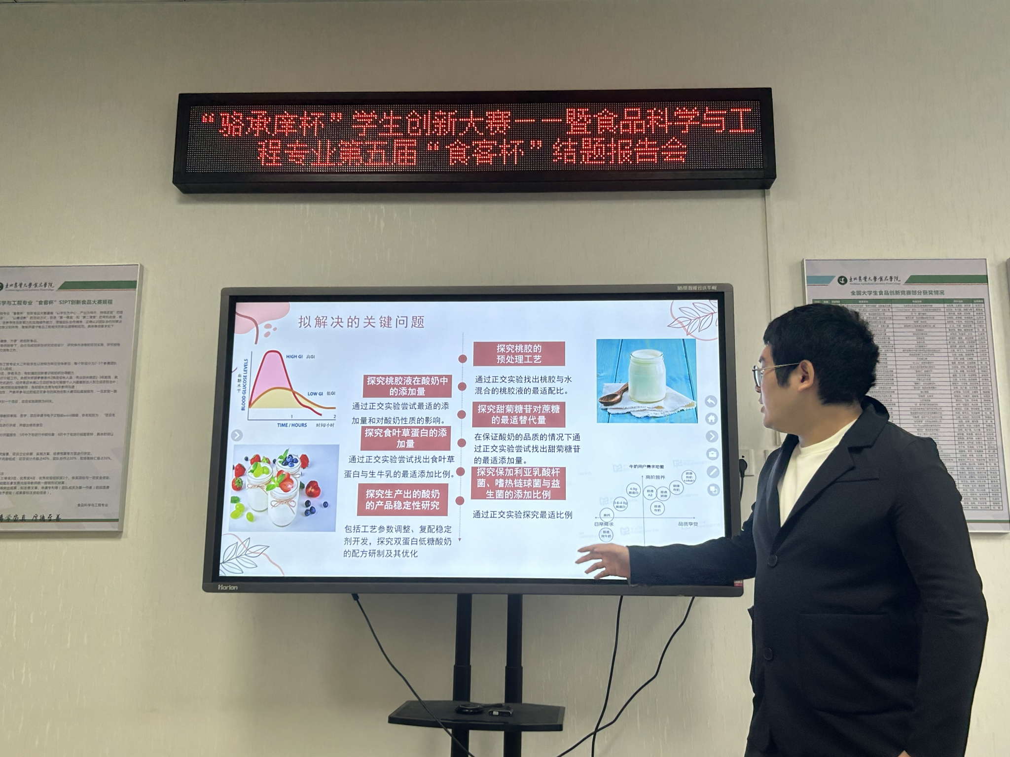 张华江教授在总结发言中对学校教务处和骆承庠教育发展基金会多年来的支持表示感谢。他强调,“食客杯”创新食品大赛在学院专业建设及学生创新能力提升方面发挥着重要作用,激发了学生对于食品新产品创新研发的兴趣,培养了学生的创新创业思维与技能。他同时高度评价了各参赛项目组在此次学科竞赛中的出色表现,并鼓励各位同学继续保持敢于创新、乐于探究的负责态度,要以此次活动为起点,积极参加其他各项创新创业竞赛活动,为东北农业大学和食品学院争光添彩。