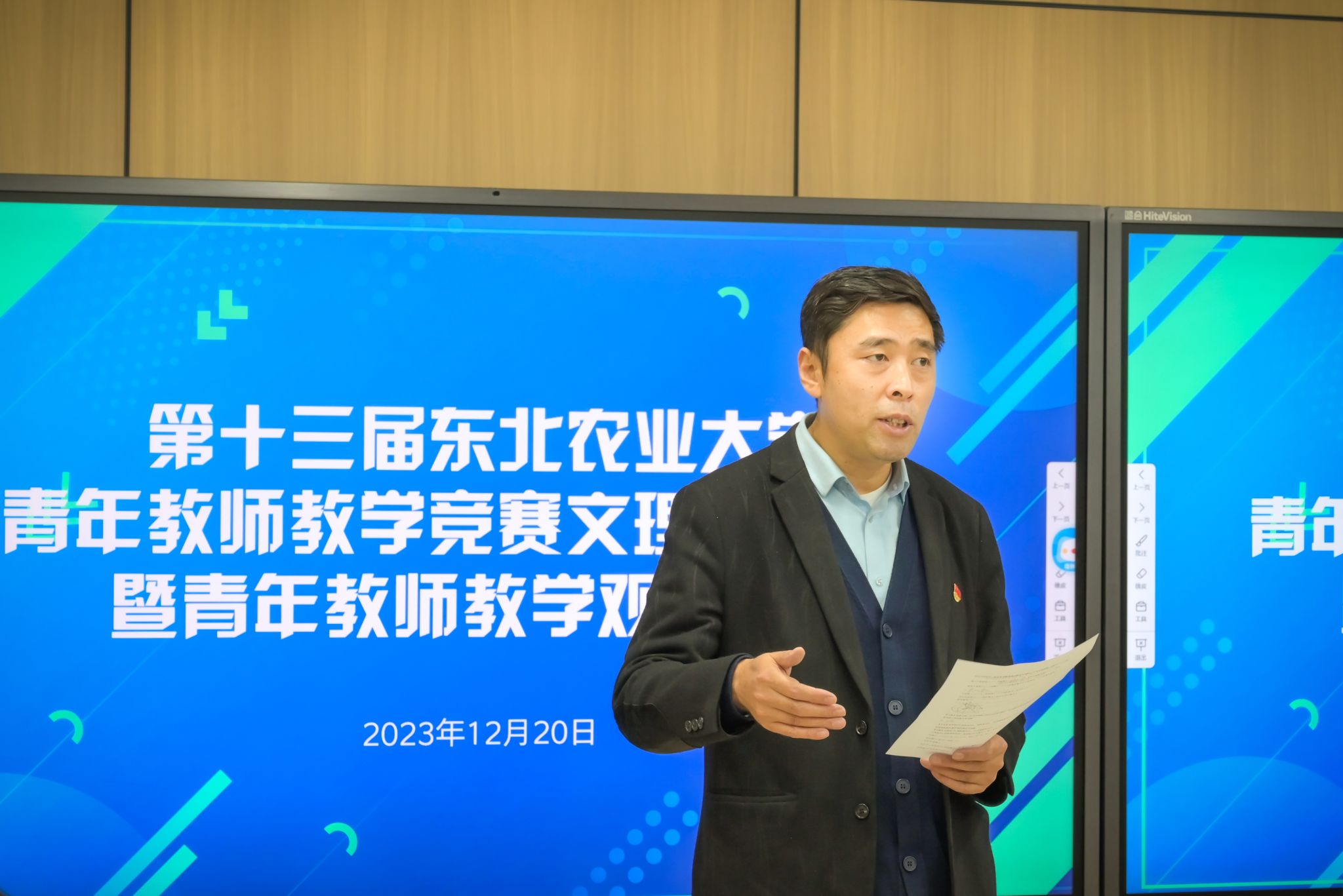 为进一步加强师德师风建设,提升青年教师的教学能力和业务水平,促进教育教学质量的提高,12月20日下午,文理学院在成栋楼数学建模实验室举办第十三届东北农业大学青年教师教学竞赛预选赛。比赛邀请经济管理学院教授王杜春、水利与土木学院教授刘东,文理学院院长付颖、文理学院教师焦扬、于鹏担任评委,全体青年教师现场观摩。比赛由学院副院长、工会主席白靖文主持。