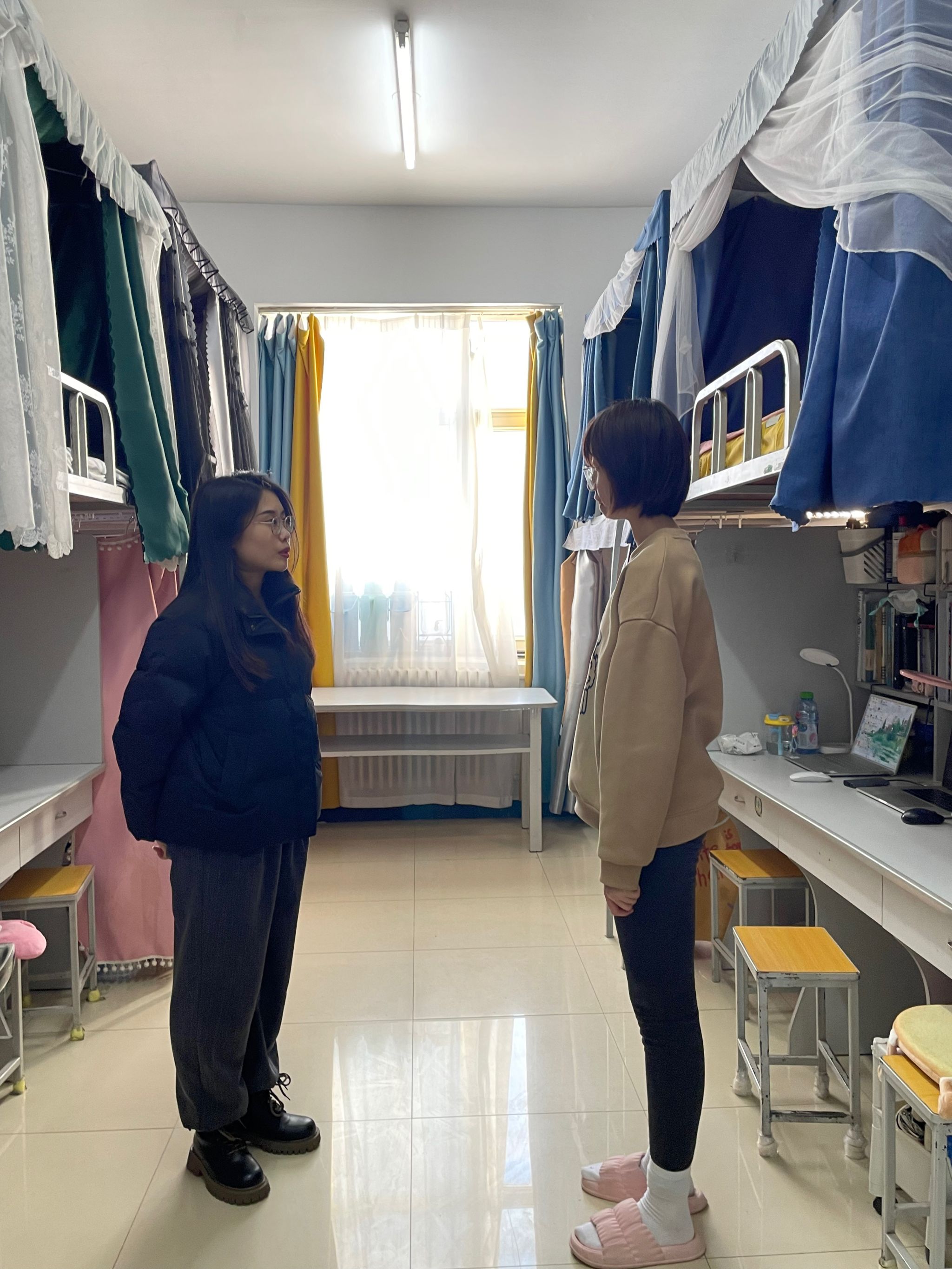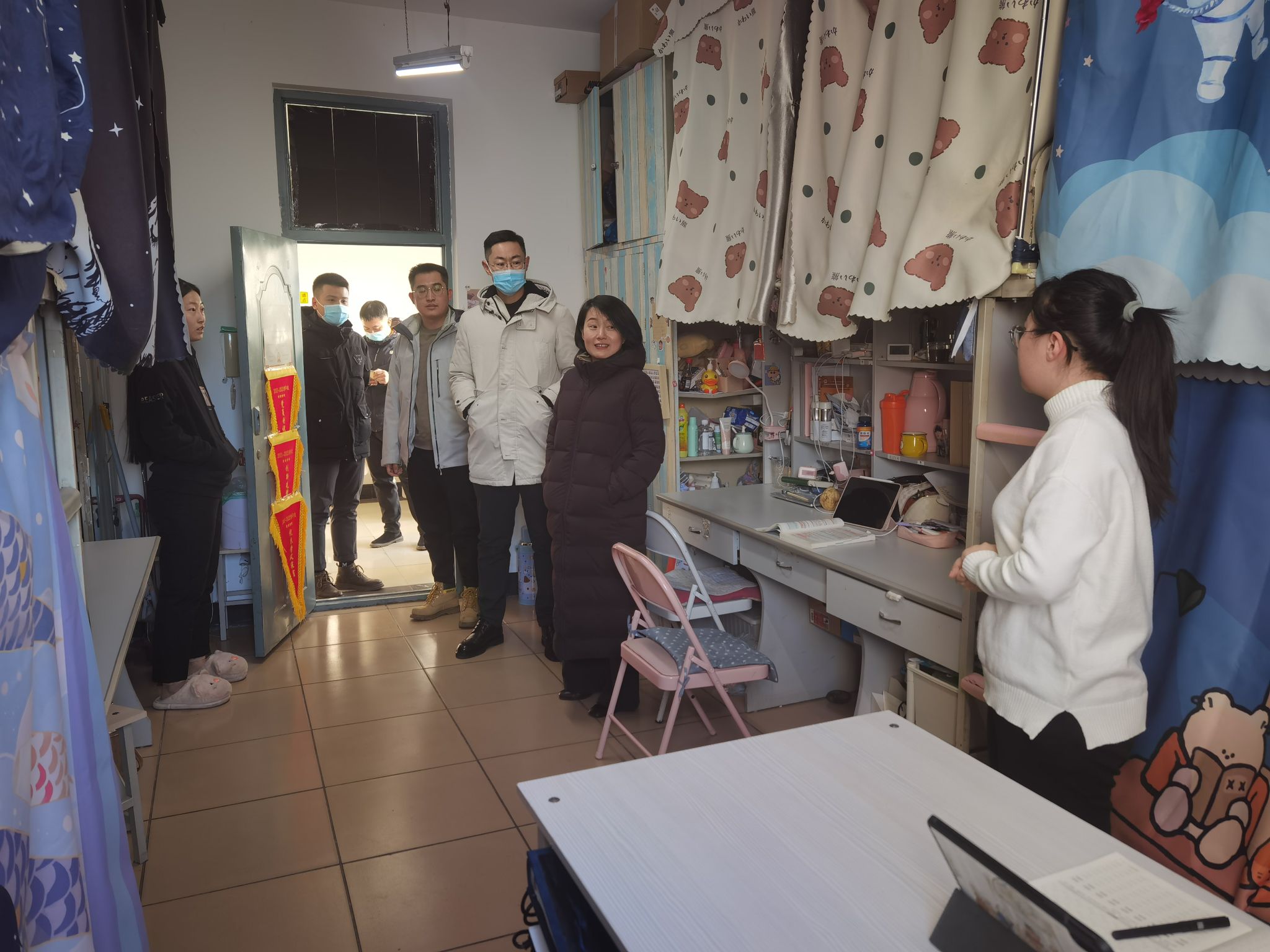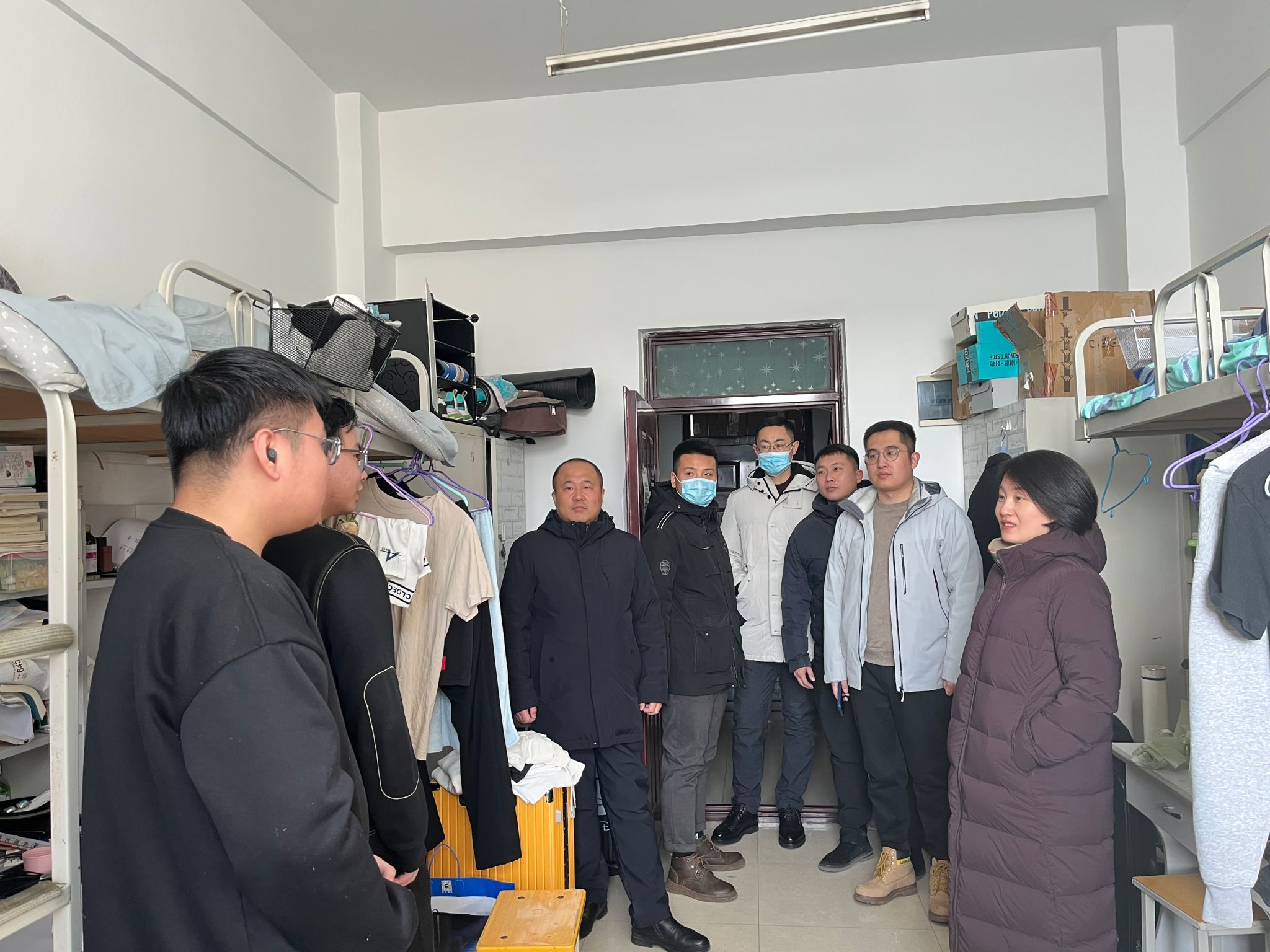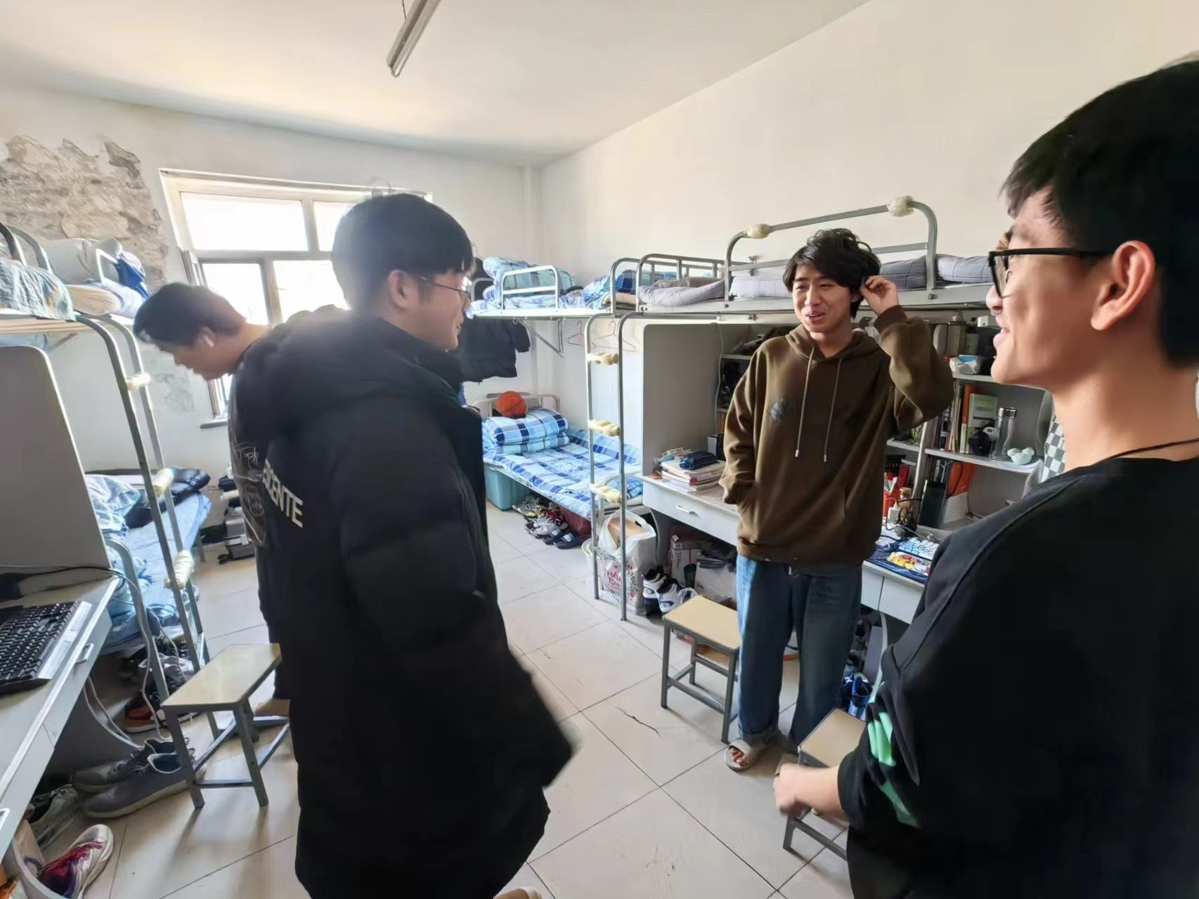 走访中,高天琦带领各年级辅导员与学生们就学业进展、未来规划、心理状态等问题开展深入交谈,引导学生规律作息,养成健康文明、积极向上的生活习惯。重点帮助考研学子开展考研规划咨询、考研政策讲解、压力情绪疏导等多形式交流,帮助学生坚定考研信心、减少考研疑惑、疏解焦虑情绪。每到一处,辅导员老师都仔细向同学们强调不能私拉电线、不能将电瓶车放置寝室内充电以及离开寝室一定要切断电源等事宜,并叮嘱同学们寝室内要互相关心、互相帮助,临近期末要努力复习,争取考取好成绩。