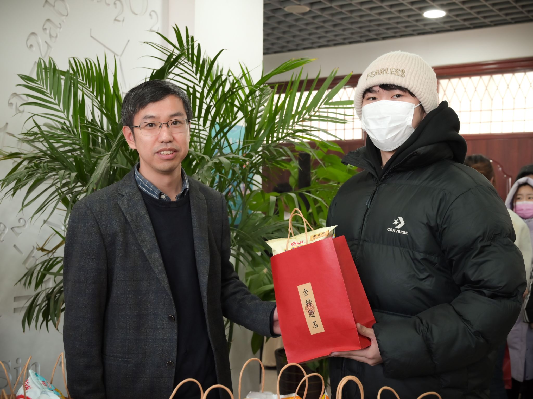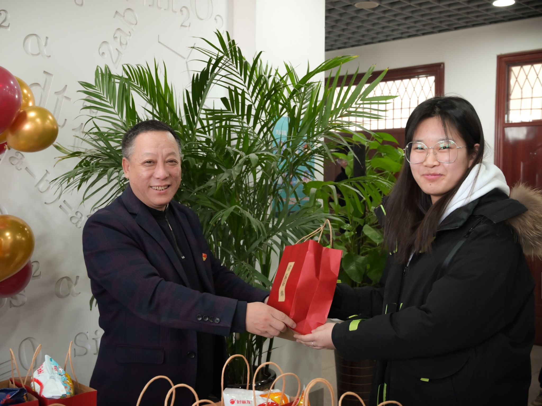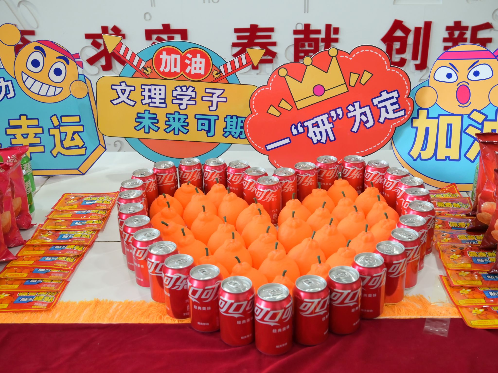 12月20日中午,学院党委书记李国义、院长付颖、党委副书记李曼、副院长吴秋峰、白靖文以及全体辅导员老师为考研学生发放了定制考研“加油包”。内含“薯”你能行薯片、红红火火可口“可乐”、“橙”风破浪捏捏乐解压橙子以及爱心“暖宝宝”暖贴等慰问品。