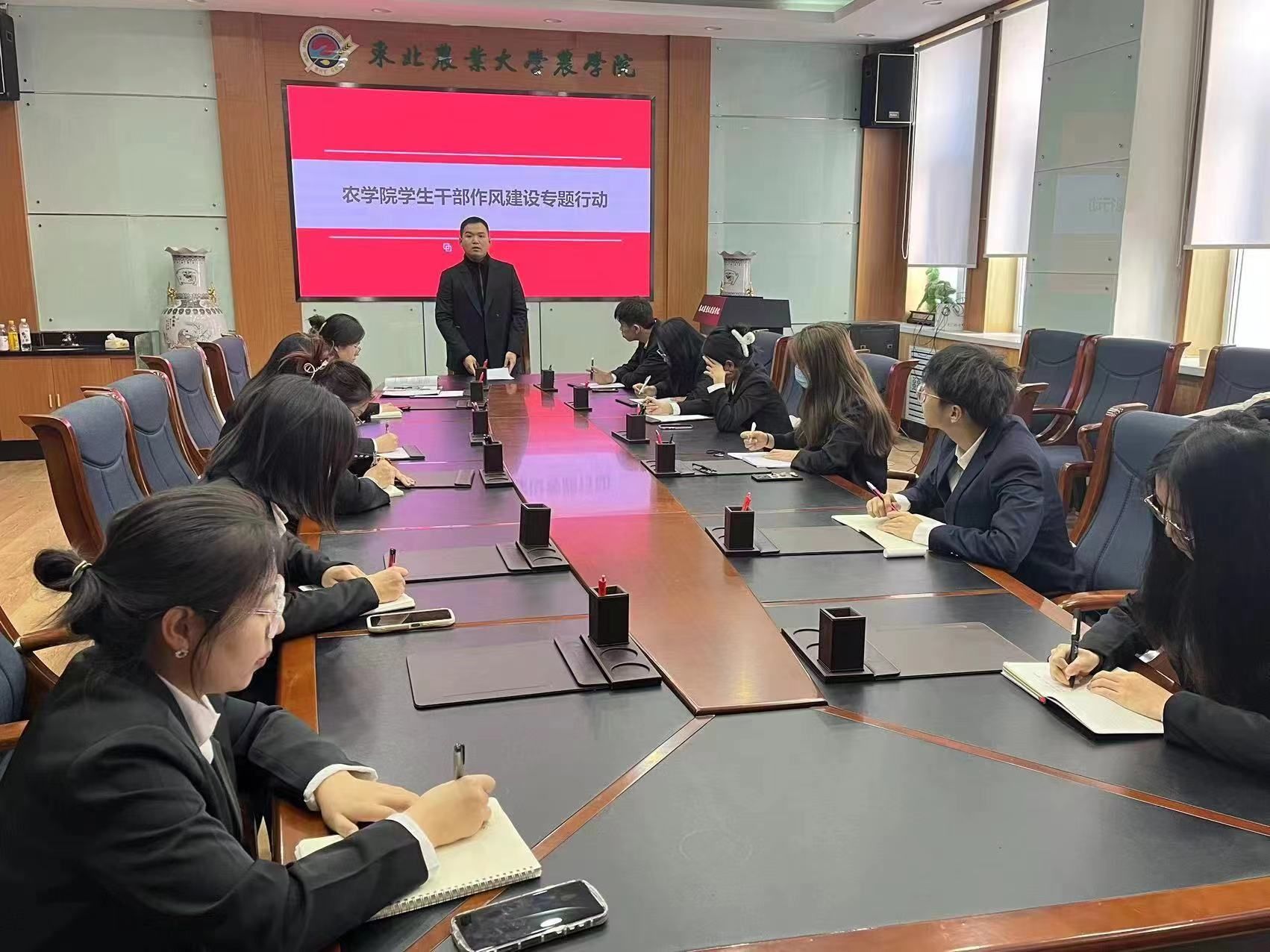 召开农学院学生干部作风建设专题会议,发挥学生干部先锋模范作用,为学院优良学风的形成和发展贡献力量。