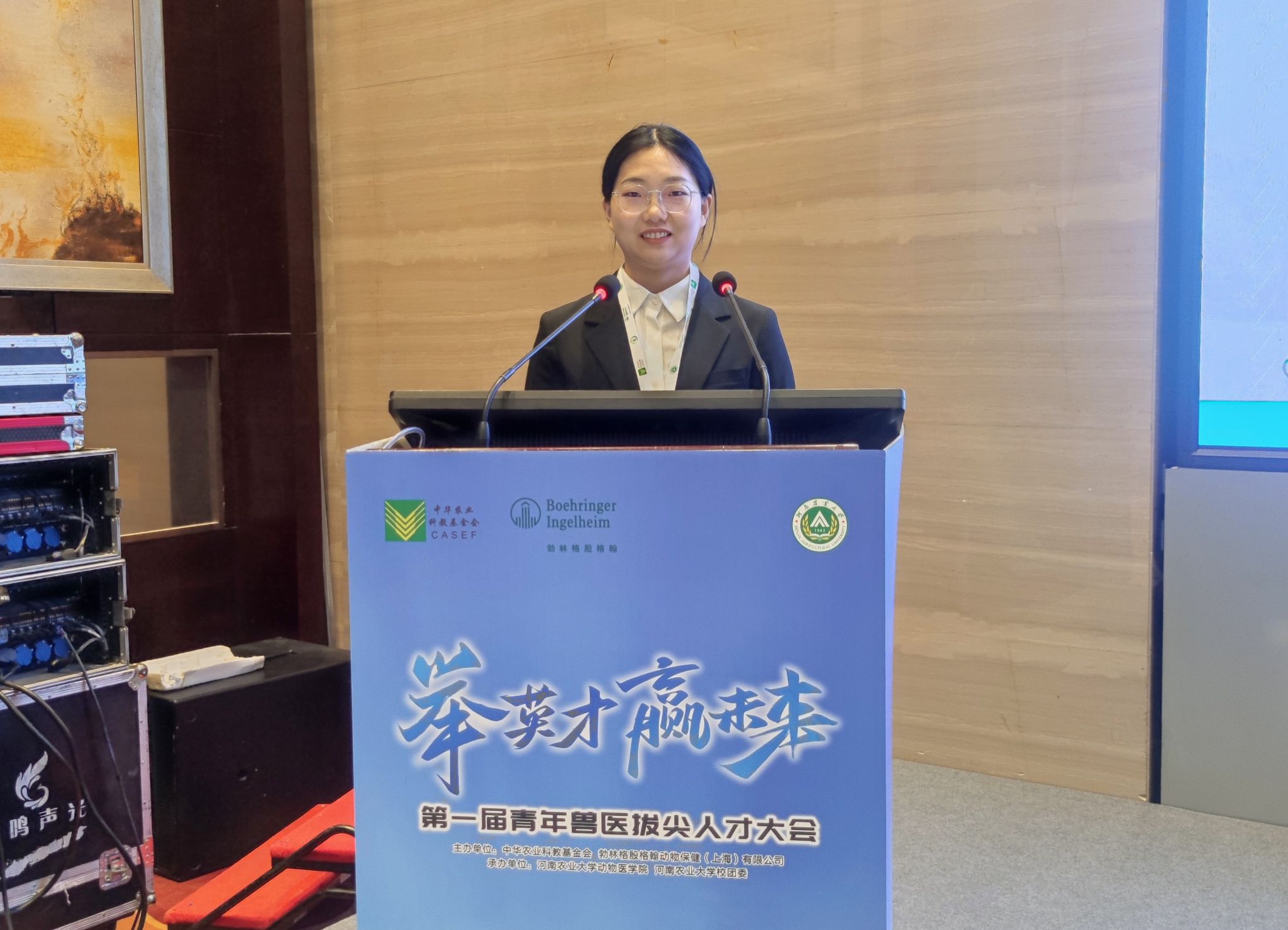 2023年12月16日-18日,由中华科教基金会、勃林格殷格翰动物保健(上海)有限公司主办的第一届青年兽医拔尖人才大会在河南农业大学举行。来自全国38个高校,85位师生参与本次项目评选申报,经过层层评选和激烈角逐,学校动物医学学院博士研究生袁中伟、韩碧琦获得青年兽医拔尖人才优秀奖。