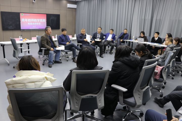 专家现场点评环节,张永强从教学手段、教学设计、教学PPT的排版角度融入课程思政内容,鼓励年轻教师积极参加校级省级教学比赛,要充分发挥新媒体和网络课堂的作用,贴近实际、贴近生活、贴近师生,开展形式多样,研磨打造符合自身特色的专属精品课堂。王杜春、余志刚对各位参赛选手的现场表现给予充分肯定,并提出要充分发挥课堂教学主渠道作用,精准讲授课程内容,积极打造精品课堂。张启文和王积田提出教学设计尤为关键,背景案例的提出要有逻辑且吸引学生眼球,由点及面、由浅入深,教学比赛不仅要握住课堂节奏,而且选择重点突出问题进行讲授,抓住各个细节,从服装、化妆、表情、教态都要精心设计,做教学业务过硬、水平一流的表率。