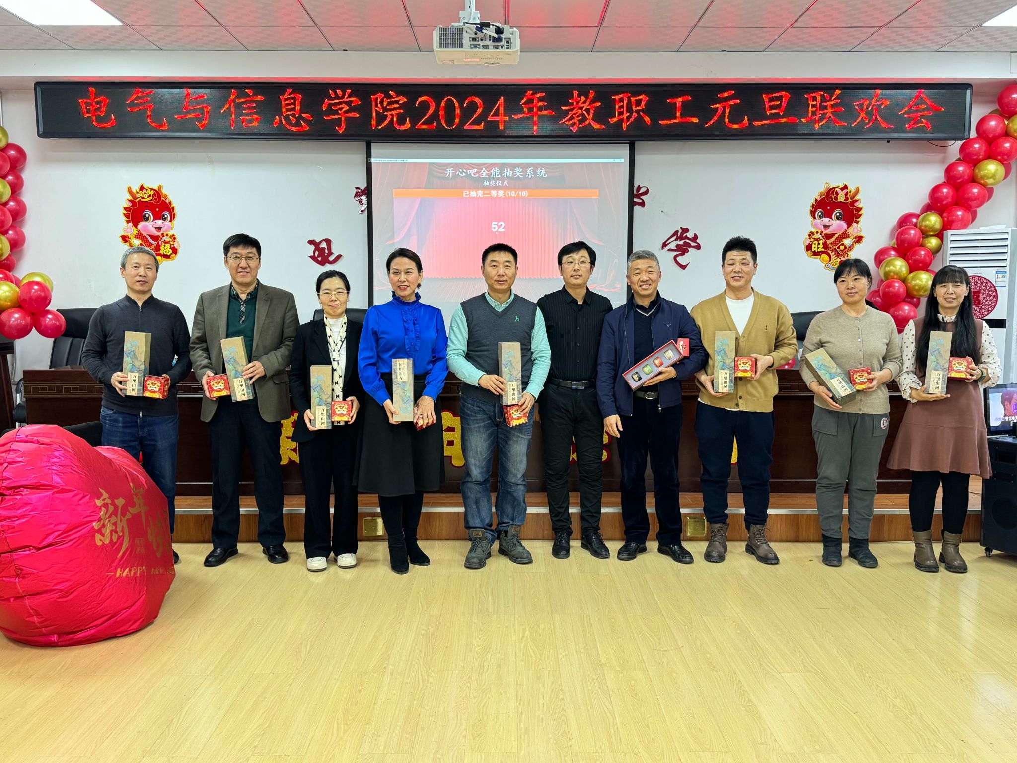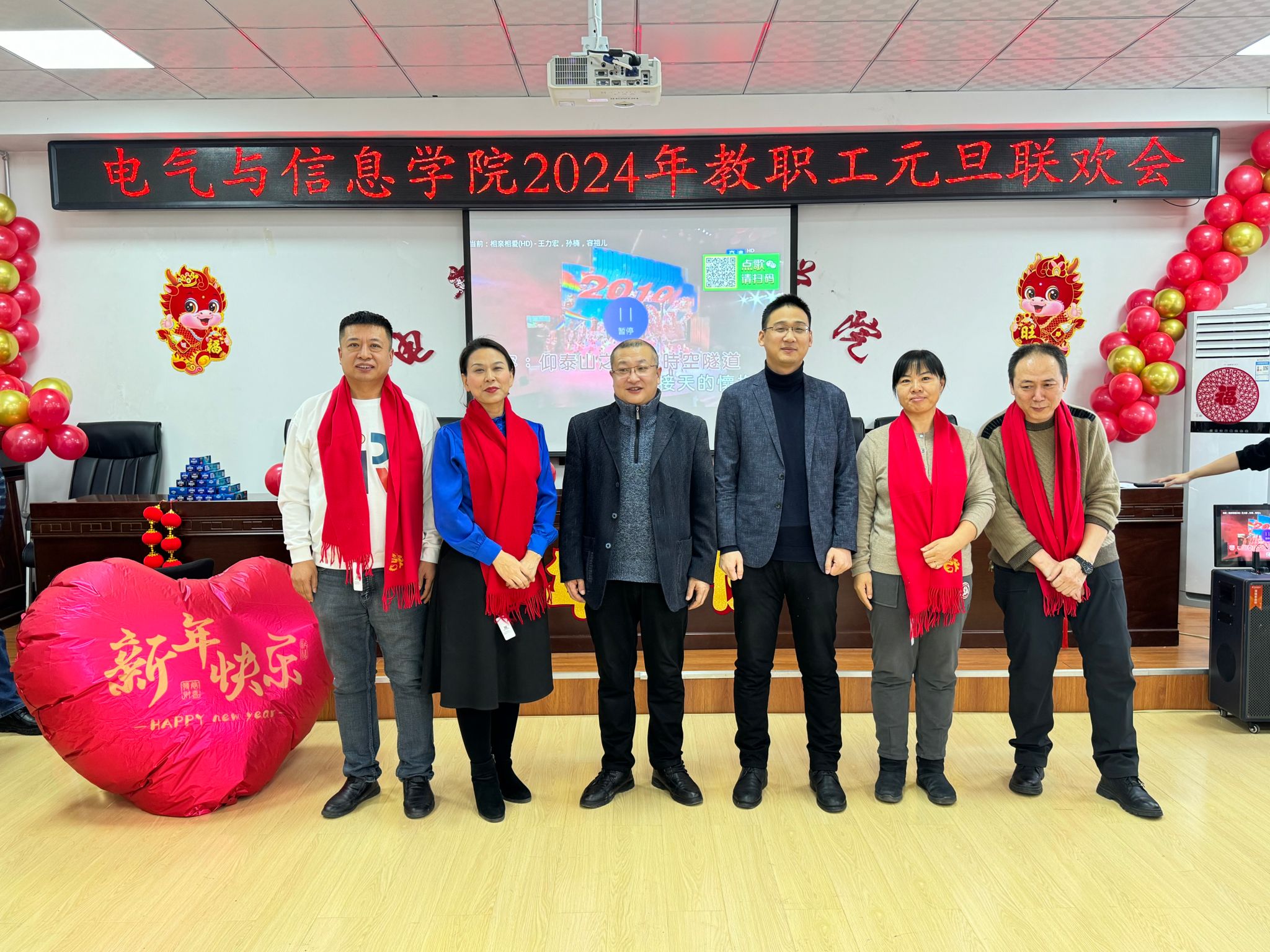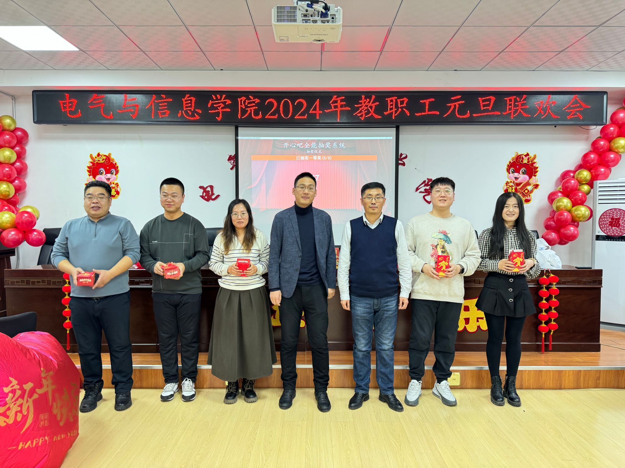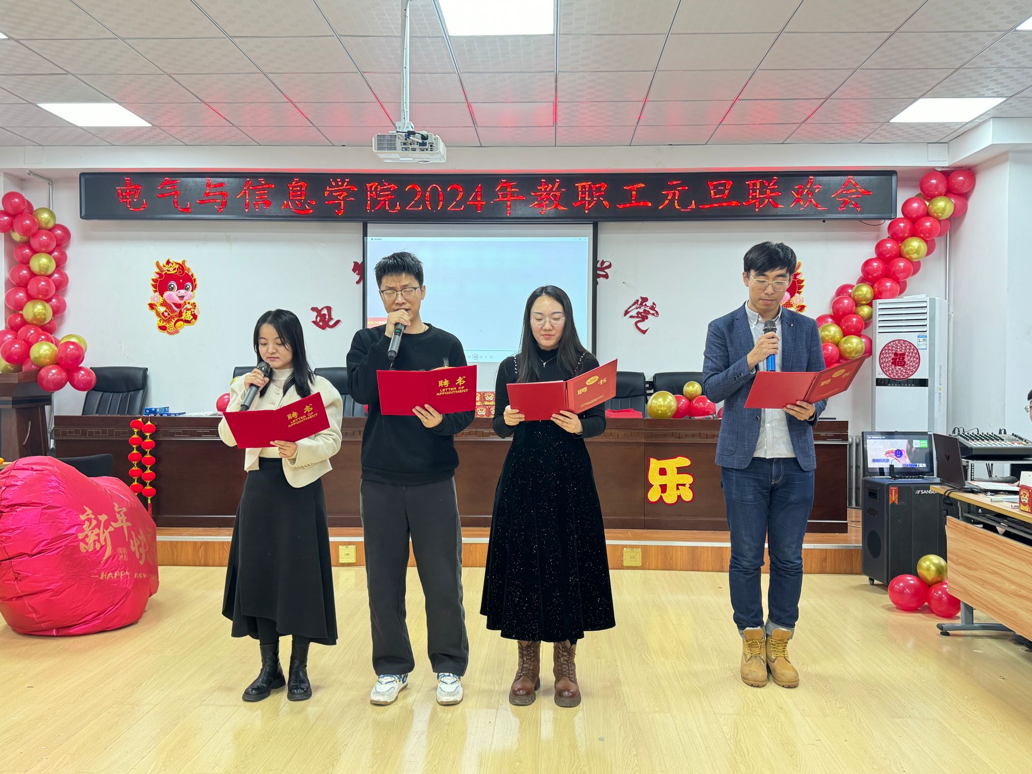 流光溢彩辞旧岁,欢歌笑语迎新年,为庆祝2024年元旦佳节,营造欢乐、祥和的节日氛围,充分展现学院教工团结奋进、昂扬向上的精神风貌,12月29日下午,电气与信息学院在学院530会议室举办了2024年教职工元旦联欢会。学院领导班子成员及全院教职工共聚一堂,联欢会由计算机基础教学部教师王文峰和辅导员乔傲涵主持。