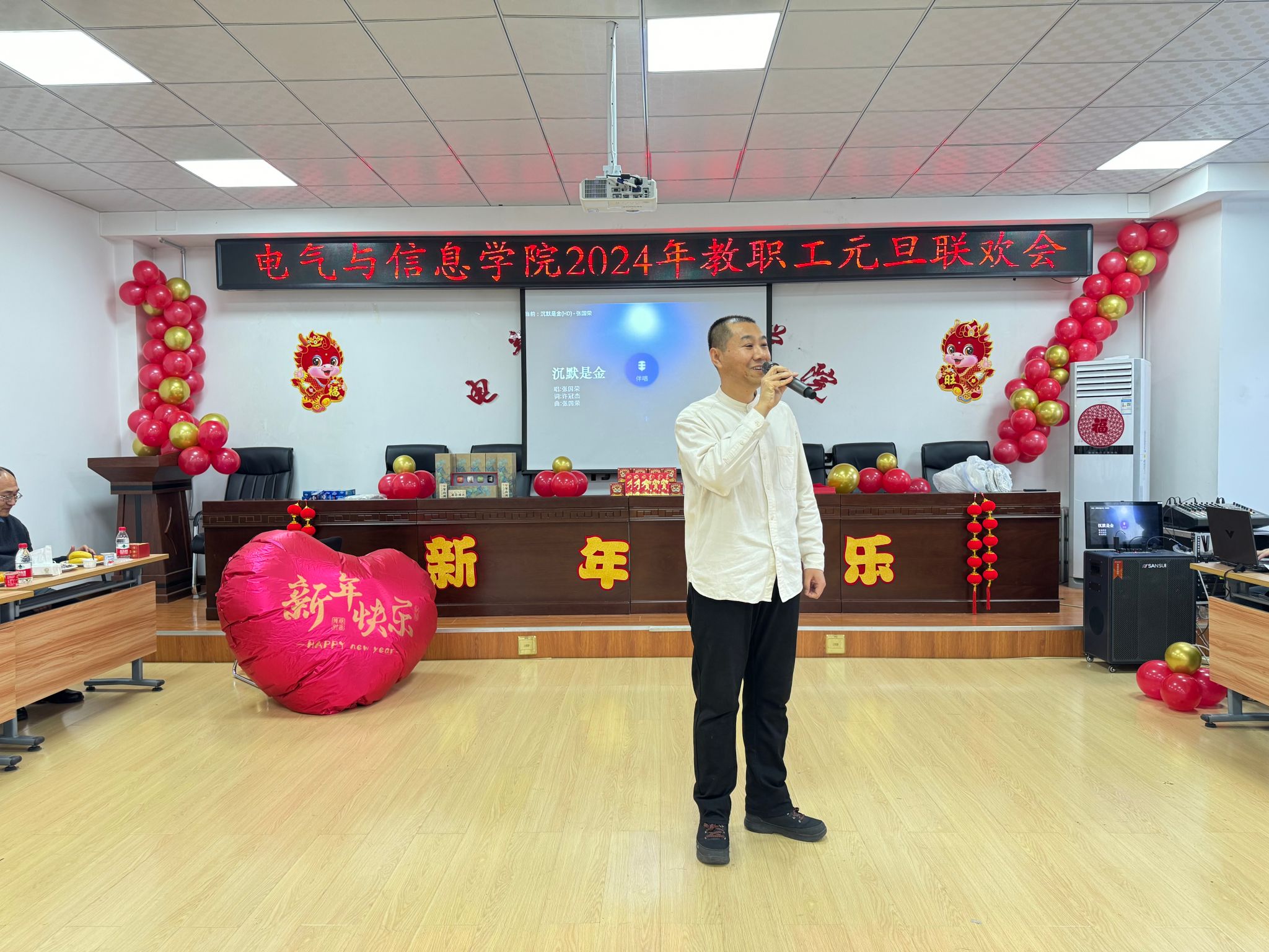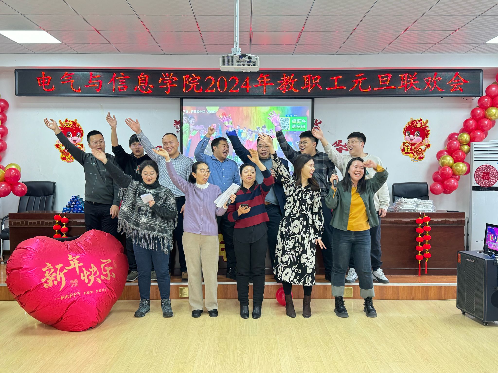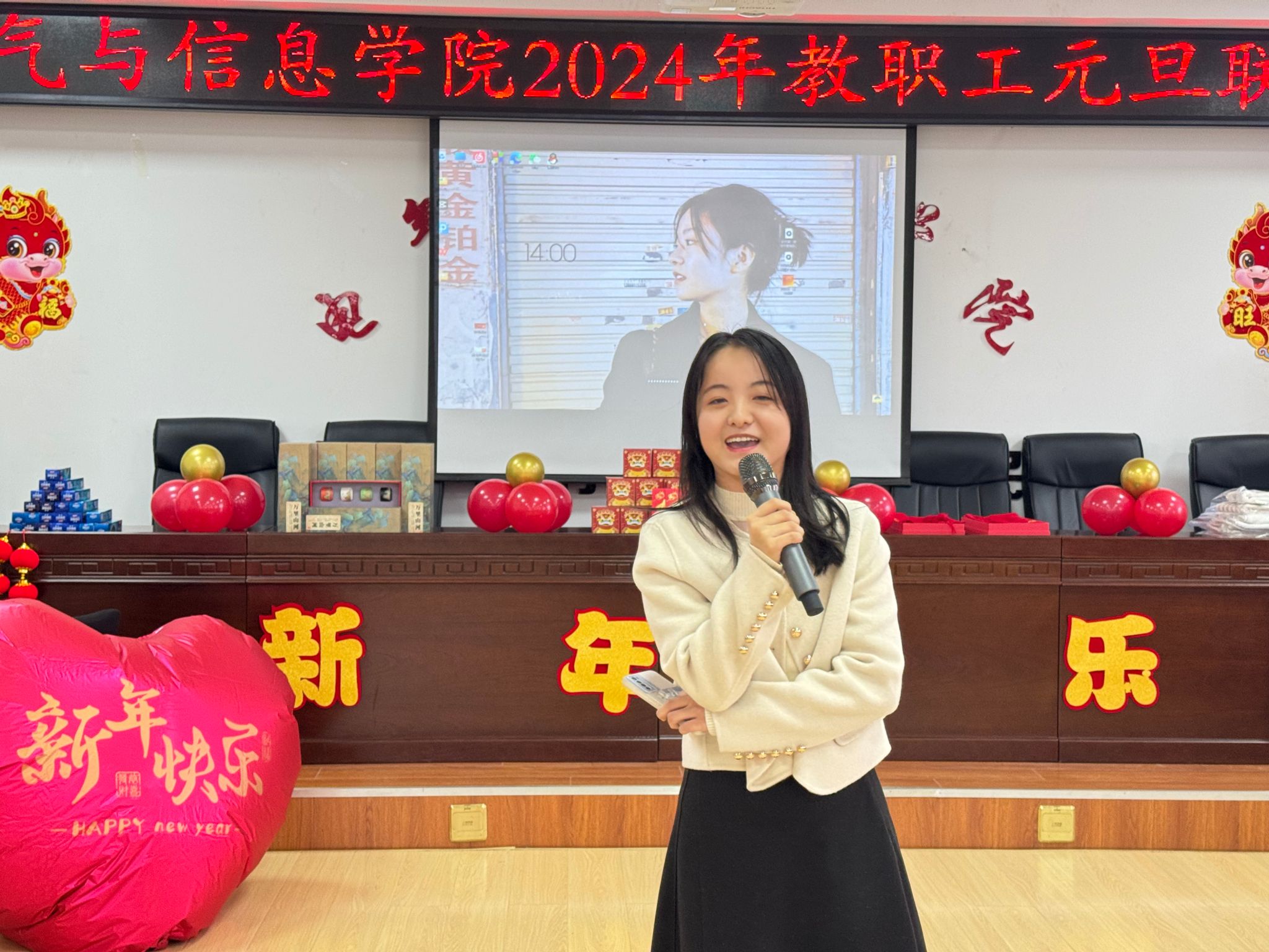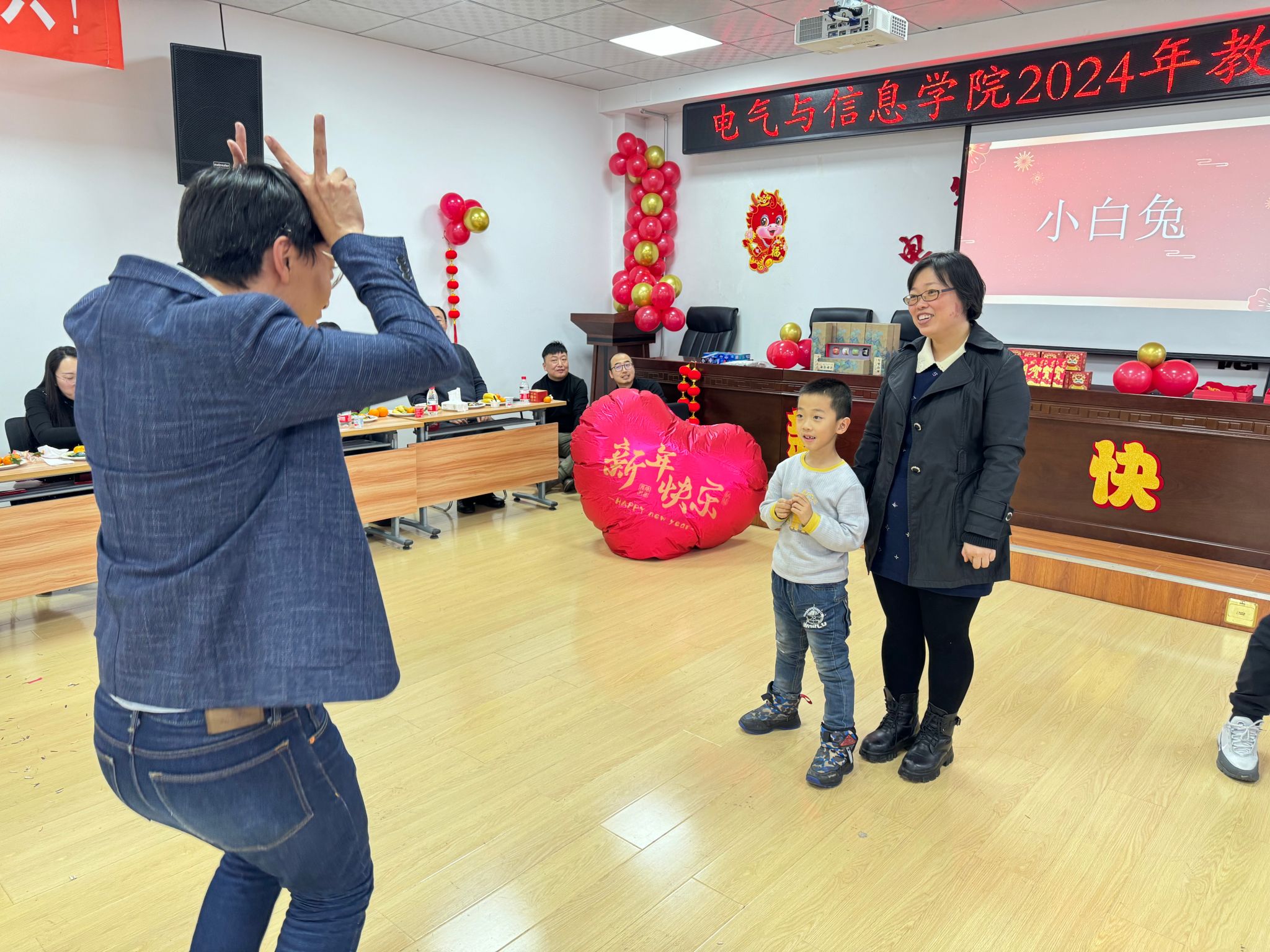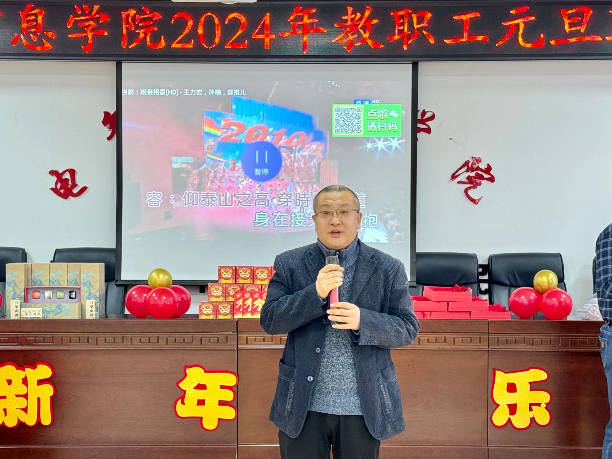 流光溢彩辞旧岁,欢歌笑语迎新年,为庆祝2024年元旦佳节,营造欢乐、祥和的节日氛围,充分展现学院教工团结奋进、昂扬向上的精神风貌,12月29日下午,电气与信息学院在学院530会议室举办了2024年教职工元旦联欢会。学院领导班子成员及全院教职工共聚一堂,联欢会由计算机基础教学部教师王文峰和辅导员乔傲涵主持。