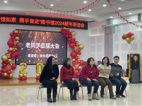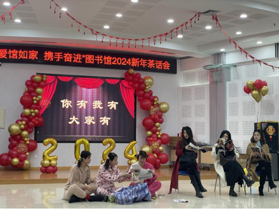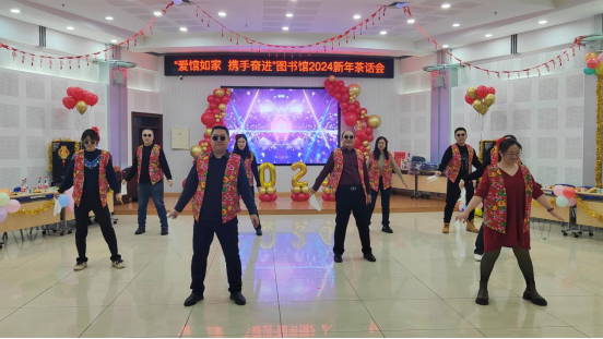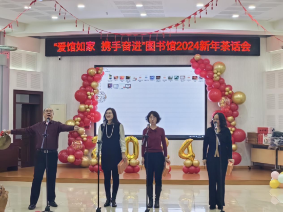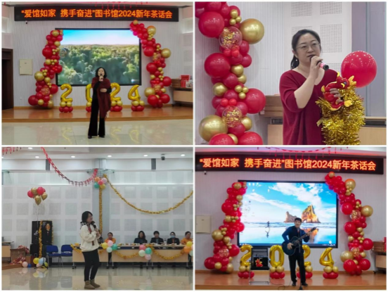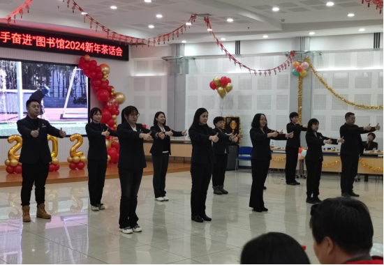 为庆祝2024新年的到来,鼓励全体馆员继续以饱满热情迎接新征程,图书馆于12月29日举办“爱馆如家,携手奋进”2024新年茶话会。回顾过去一年的成绩和收获,增强集体凝聚力和荣誉感,更好地履行图书馆服务全校师生、服务校园文化建设、服务人才培养、服务科学研究和学科发展的职能。全体馆员热情响应、踊跃参与,以部门、支部、小组、个人为单位,利用业余时间创作编排了18个形式多样、新意十足的歌舞表演、创意情景剧和语言类节目。