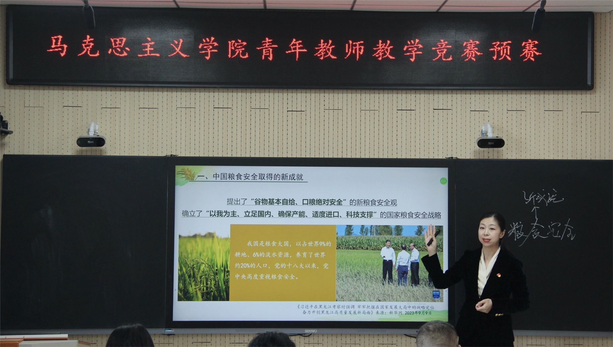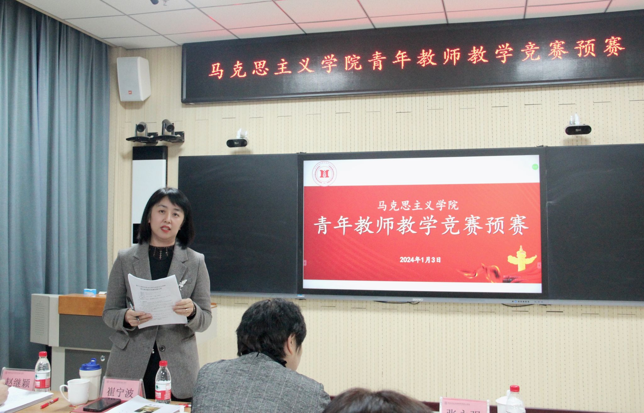 为全面学习贯彻习近平新时代中国特色社会主义思想和党的二十大精神,围绕立德树人根本任务,加强师德师风建设,进一步提升青年教师的教学能力和业务水平,激发青年教师更新教育理念和掌握现代教学方法的热情,按照校工会《关于举办第十三届东北农业大学青年教师教学竞赛活动的实施方案》要求,马克思主义学院于1月3日下午在成栋楼1014室举办了青年教师教学竞赛。比赛邀请哈尔滨理工大学马克思主义学院教授李庆华、东北农业大学教务处处长张永强、经济管理学院教授崔宁波、马克思主义学院教授吴玲、谷松,副院长刘大勇、赵继颖担任评委,马克思主义学院党委书记吕晶、院长许静波及学院青年教师全程观摩。比赛由赵继颖主持。