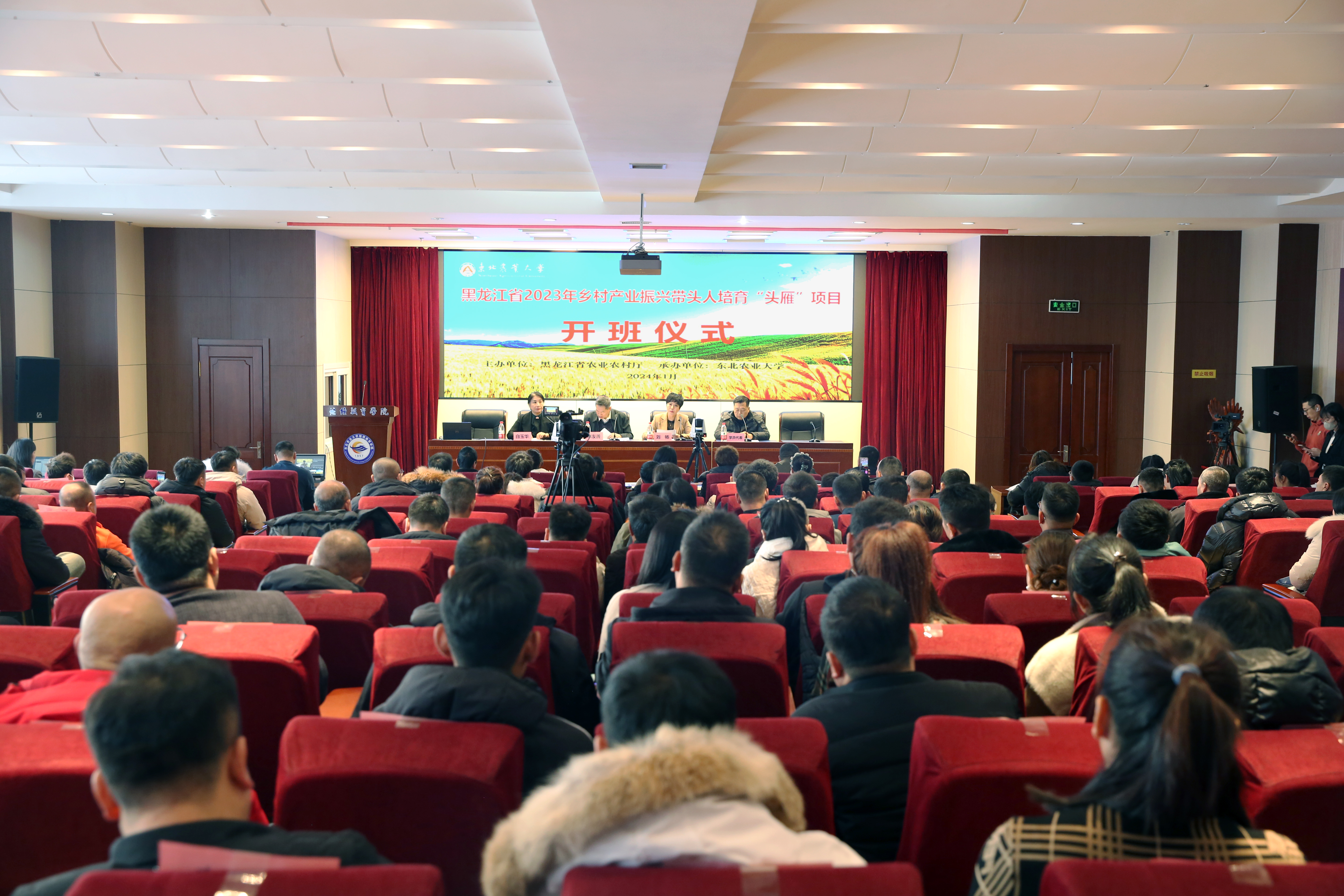 1月3日,由黑龙江省农业农村厅主办,东北农业大学承办的黑龙江省2023年乡村产业振兴带头人培育“头雁”项目开班仪式在我校继续教育学院会议室举行,来自哈尔滨市、牡丹江市、佳木斯市等全省头雁项目学员共计205人参会。继续教育学院党委书记李友善、院长刘畅、副院长白玉华及培训班班主任等工作人员出席会议。会议由白玉华主持。