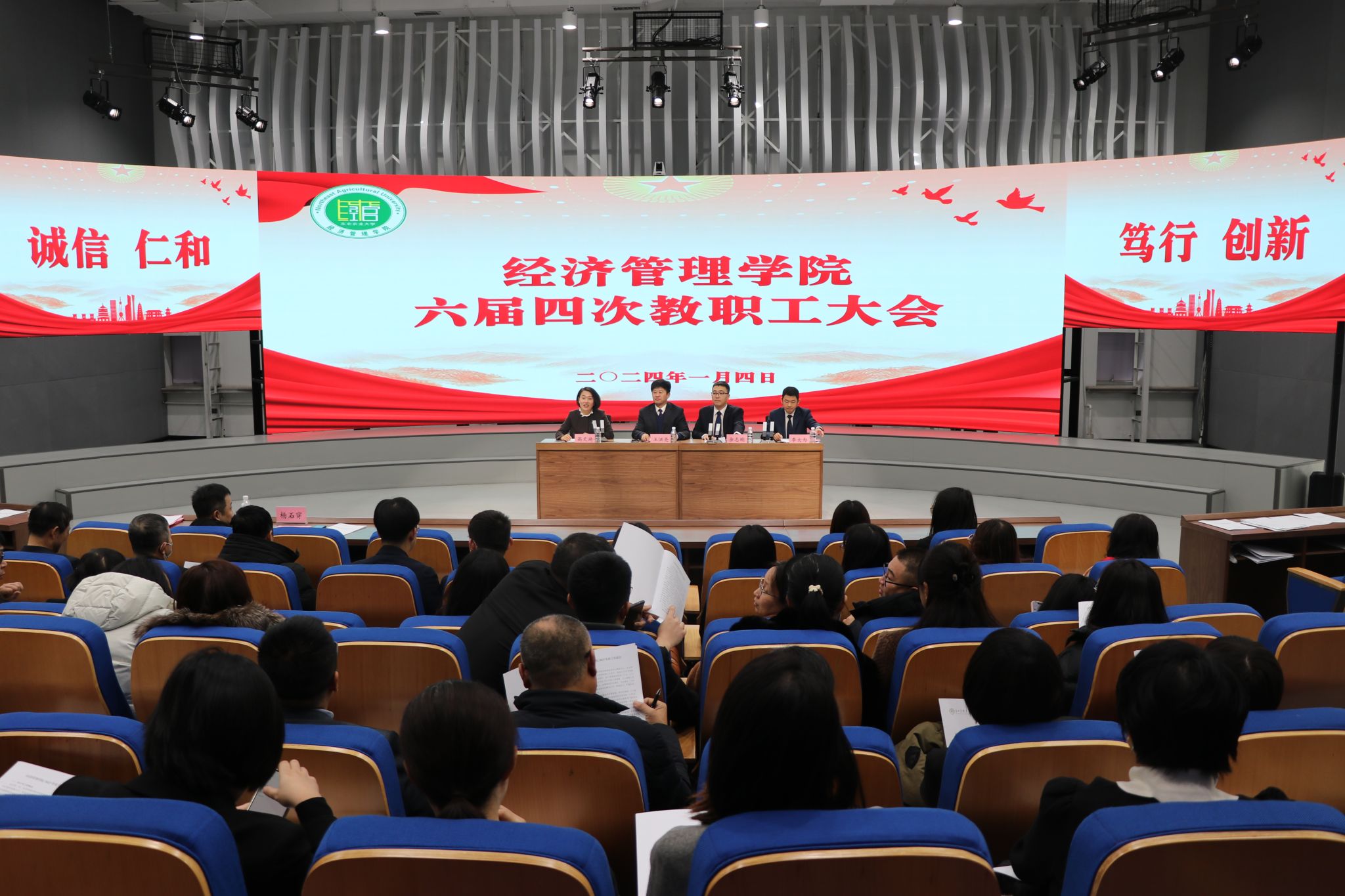1月4日上午,经济管理学院六届四次教职工大会在成栋13楼报告厅召开,校工会副主席杨石穿代表学校出席大会,学院领导班子成员、132名教职工参加会议。会议由学院党委副书记、工会主席高天琦主持。