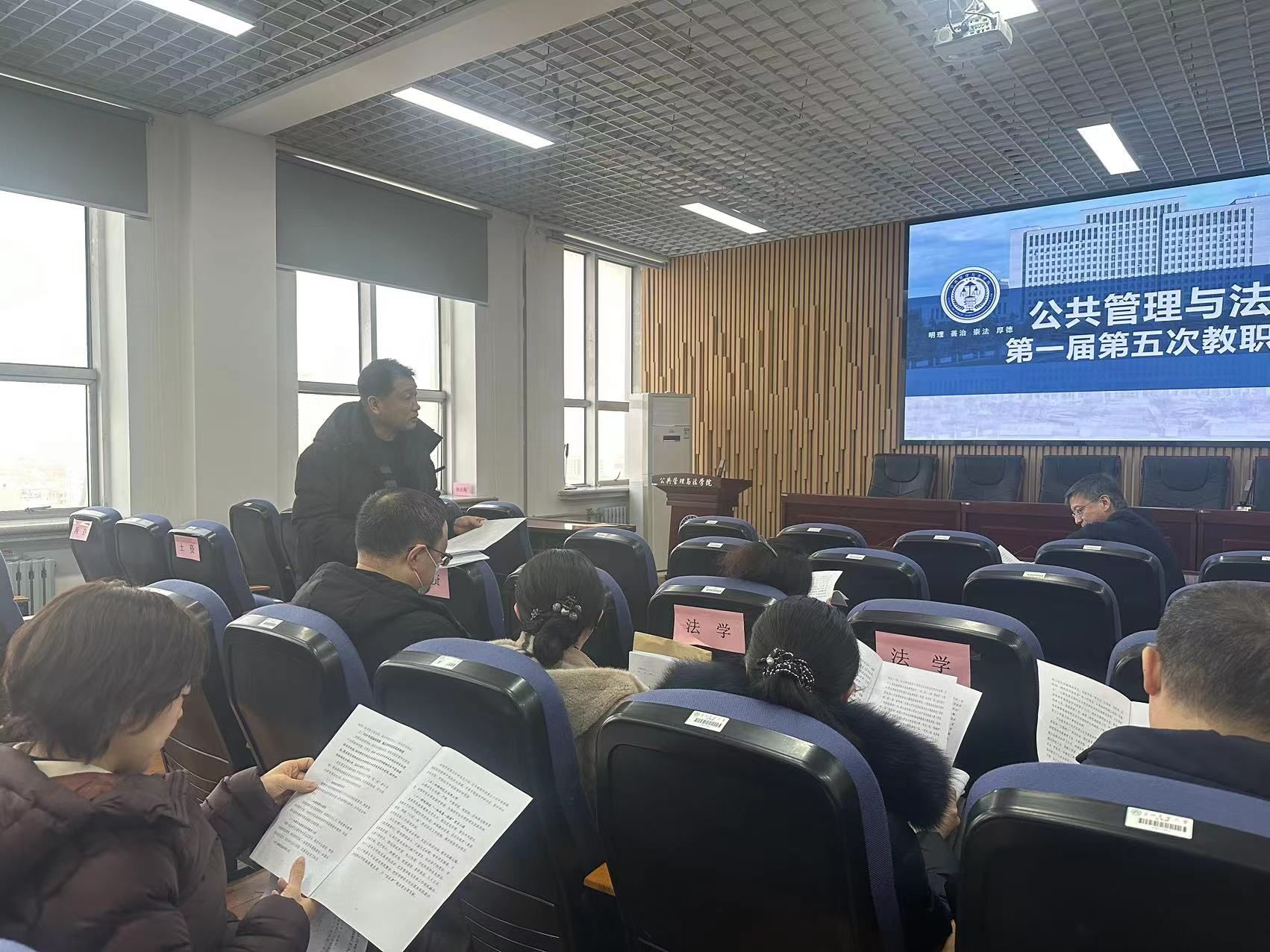 1月5日,公共管理与法学院一届五次教职工大会在成栋楼1104报告厅召开。学院领导班子、全体教职工出席大会。会议由学院党委副书记、工会主席马涛主持。