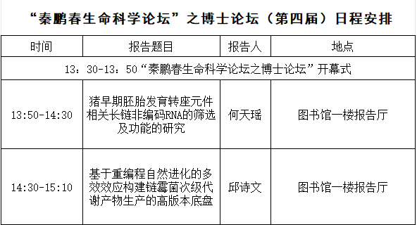为了传承和发扬秦鹏春先生敢为人先的创新意识和锲而不舍的科研精神,进一步推动我院研究生学风建设,发挥优秀研究生榜样力量,营造良好、浓厚的学术氛围,提高我院研究生培养质量,生命科学学院拟于2024年6月13日举办“秦鹏春生命科学论坛”之博士论坛(第四届)。报告人为经各二学科推荐和学院选拔的2024届优秀博士毕业生。论坛以学术会议形式,采取线下方式进行。