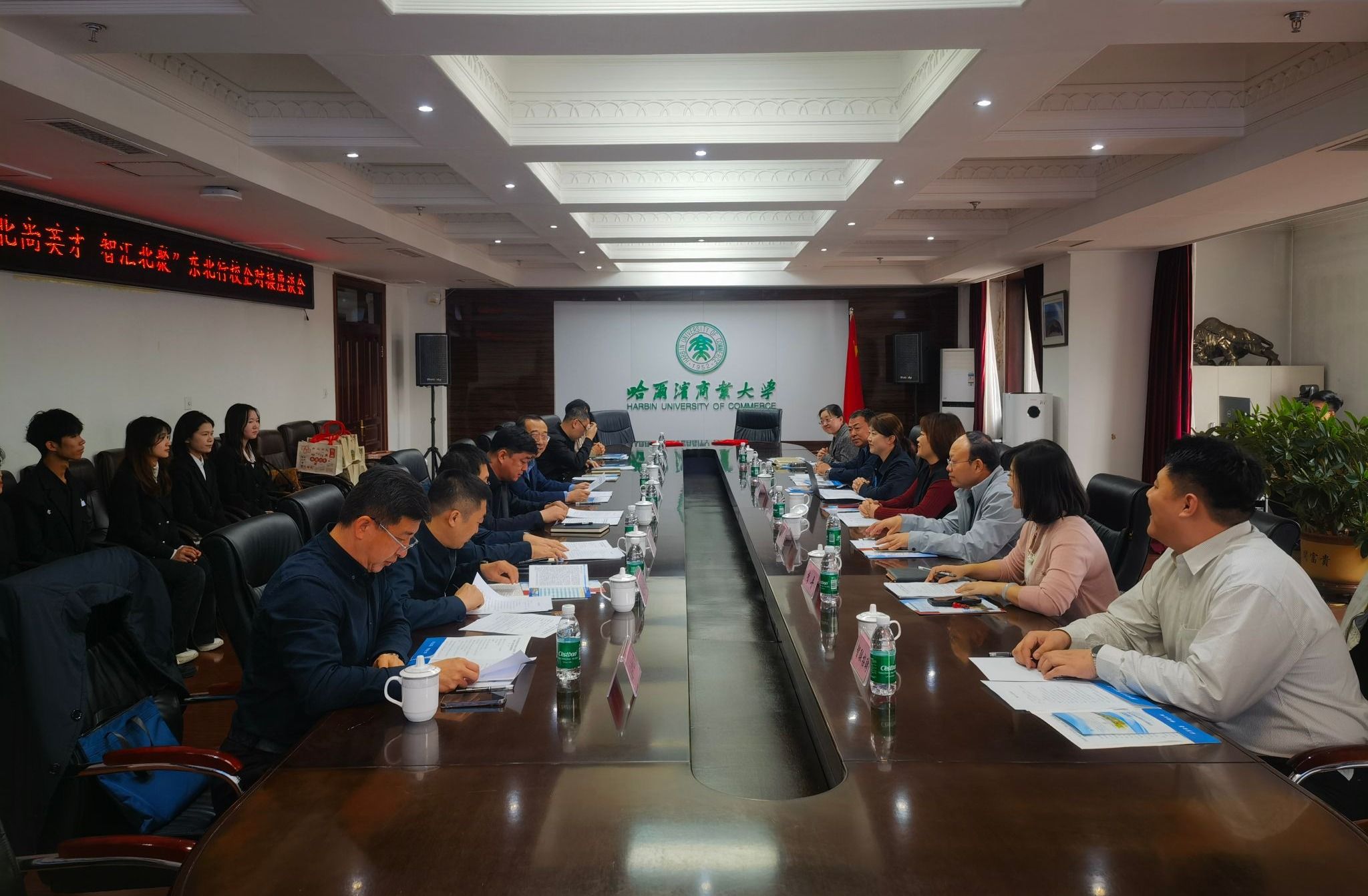 10月17日,青岛市“招才引智名校行”暨市北区“北尚英才 智汇北聚”东北行校企对接座谈会在哈尔滨商业大学举行。东北农业大学招生就业处副处长吴立龙,青岛市北区人社局副局长庄晓文,青岛幼儿师范高等专科学校、省港集团、青岛鹏腾经济技术合作集团有限公司的企业代表,东北林业大学、黑龙江大学、哈尔滨理工大学等高校就业处相关负责同志参加会议。