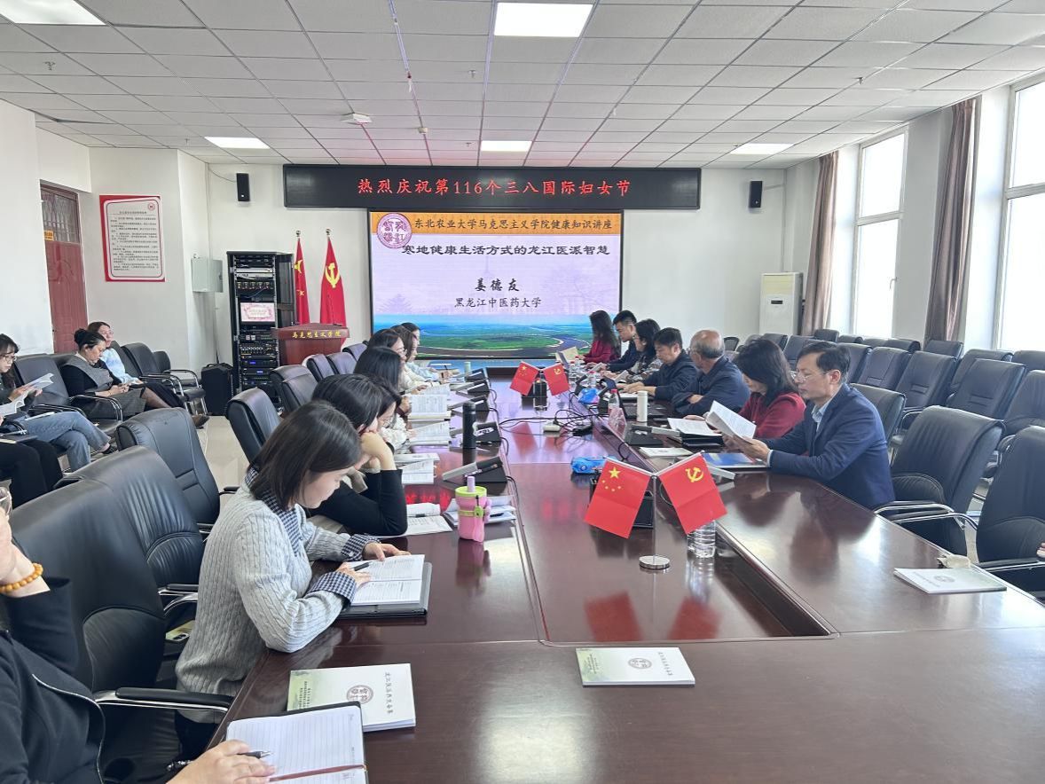 为普及寒地养生知识、守护教职工身心健康,学院邀请全国名老中医药专家传承工作室导师、黑龙江中医药大学二级教授、龙江学者特聘教授姜德友作《寒地健康生活方式的龙江医派智慧》专题讲座。姜德友结合黑龙江寒地气候特点,围绕饮食、起居、情志、慢病防控等方面,讲解养生要点并示范实用保健方法,为女教职工送上定制“健康大礼”。大家认真聆听、积极互动,纷纷表示将把所学运用到日常,以更健全体魄、更饱满精神投入思政育人工作。