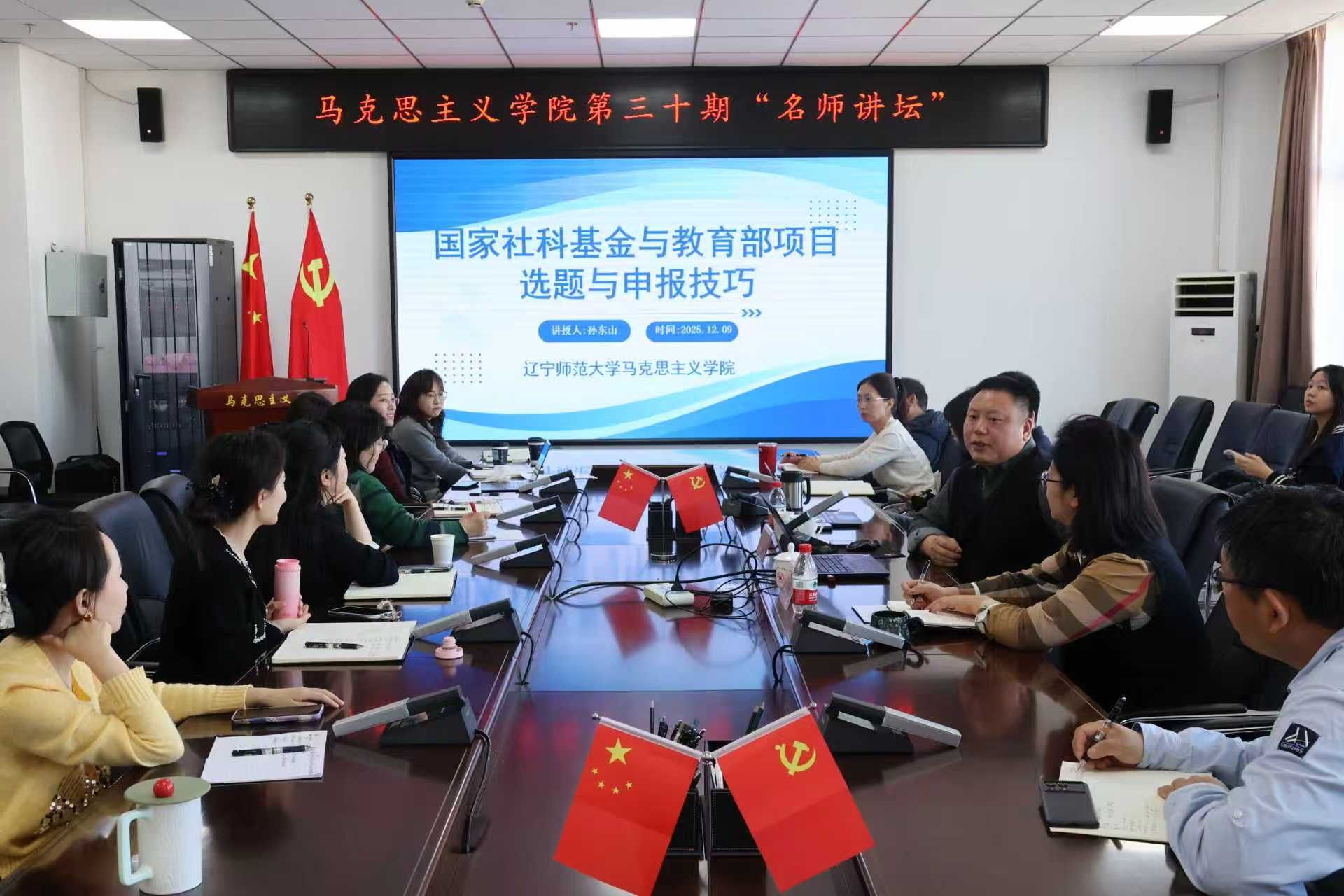 正值“十五五”规划开局的关键节点,为持续深化开展有组织科研工作,切实破解师生在高层次课题申报中的重点、难点问题,全面提升学院师生国家社科基金、教育部项目等课题的选题与申报能力,3月14日上午,马克思主义学院举办第三十期“名师讲坛”。本期讲坛特邀辽宁师范大学马克思主义学院孙东山博士作题为《国家社科基金与教育部项目选题与申报技巧》的专题分享,学院师生共同参与本次讲坛,活动由学院副院长赵继颖主持。
