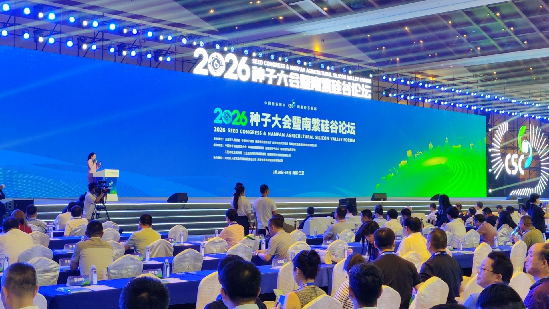 3月28日,2026种子大会暨南繁硅谷论坛在海南三亚开幕。本届大会以“中国种业振兴南繁硅谷崛起”为主题,由三亚市人民政府、中国种子协会、海南省农业农村厅、崖州湾国家实验室、海南省农垦投资控股集团有限公司主办,来自农业农村部、国家相关部委、各省市种业管理部门、科研院校、行业协会、种子企业代表及国际种业同仁共2000余人参会。我校党委副书记贺景平、副校长陈庆山、科学技术处(社会科学处)副处长王朋瑾等参加会议。