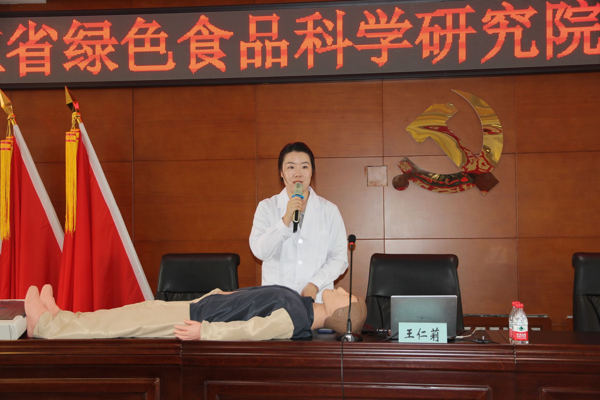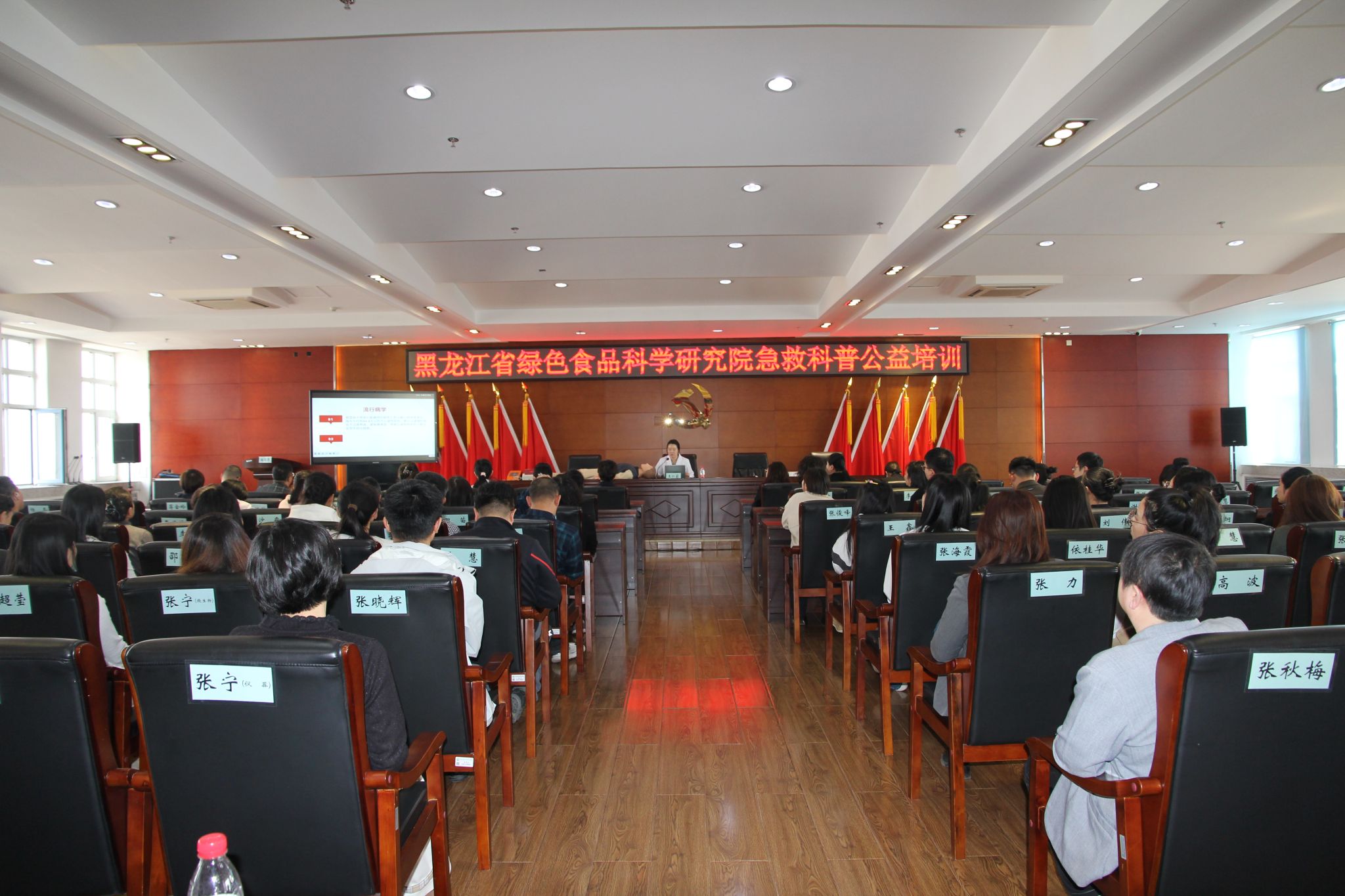 为进一步提升职工的健康防护意识与应急自救互救能力,筑牢健康安全防线,近日,黑龙江省绿色食品科学研究院在八楼会议室举办急救科普专题培训。活动特邀黑龙江护理高等专科学校临床医学系师资团队到院授课,临床医学系党总支书记刘瑾带队,刘博、王仁莉、刘泽慧、张芮瑞四位教师共同参与。绿研院副院长兼纪委书记杨文敏、各部门负责人、全院职工及后勤服务人员参加培训。培训由纪检监察处处长刘方主持。