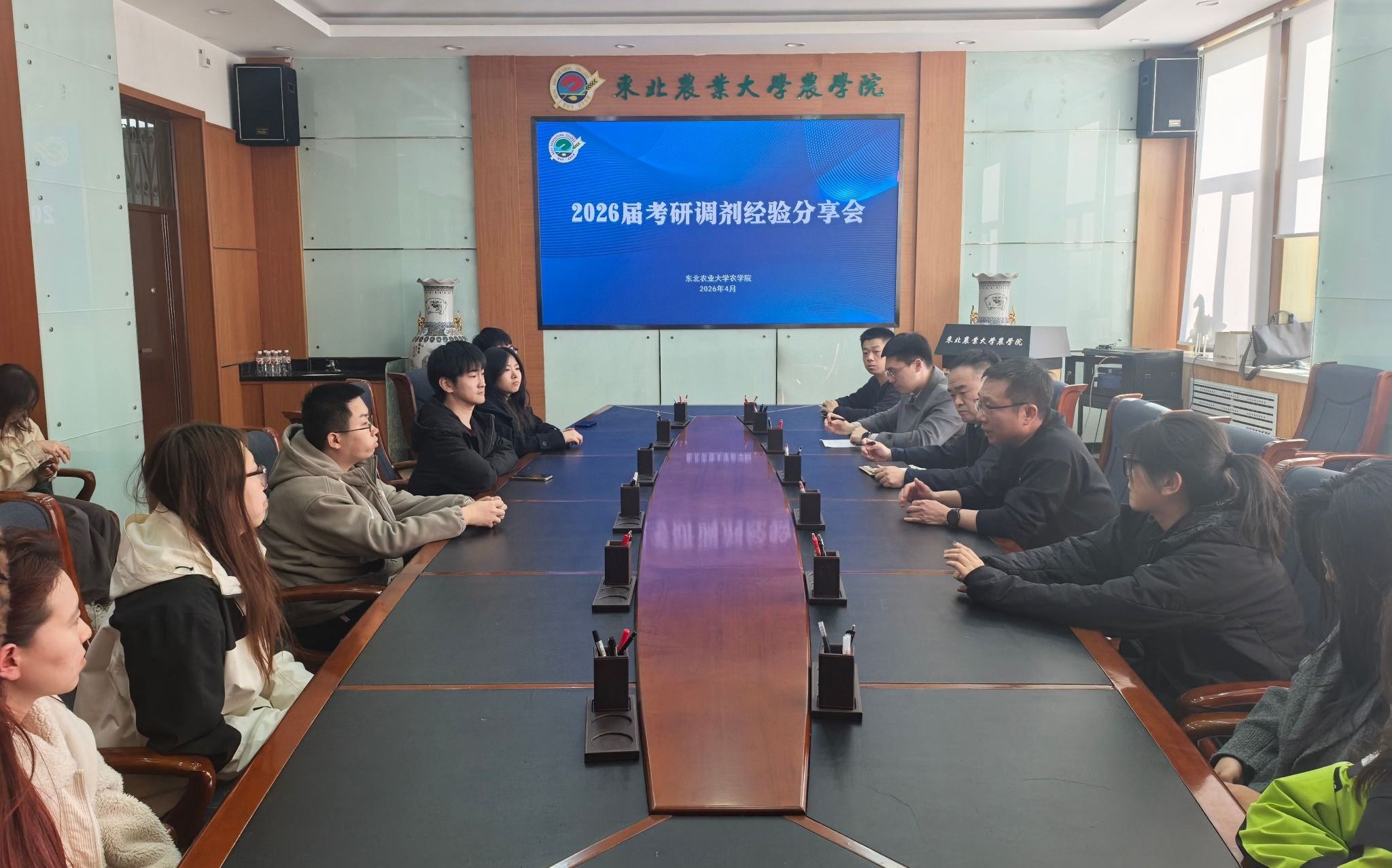4月7日下午,农学院在农学楼212会议室举办2026届考研调剂经验分享会。活动特邀学院教授张林及2025届毕业生孙晓秋、郭一涤进行经验分享。学院党委副书记马涛参加活动,活动由辅导员李镇童主持。