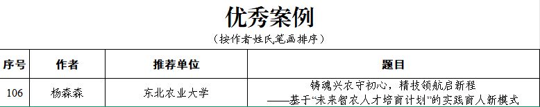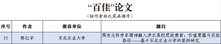 其中,工程学院辅导员陈红宇撰写的论文《蒋亦元科学家精神融入涉农高校思政教育:价值意蕴与实践路径——基于东北农业大学的案例研究》获评“百佳论文”,电气与信息学院辅导员杨森森撰写的工作案例《铸魂兴农守初心,精技领航启新程——基于“未来智农人才培育计划”的实践育人新模式》获评“优秀案例”。
