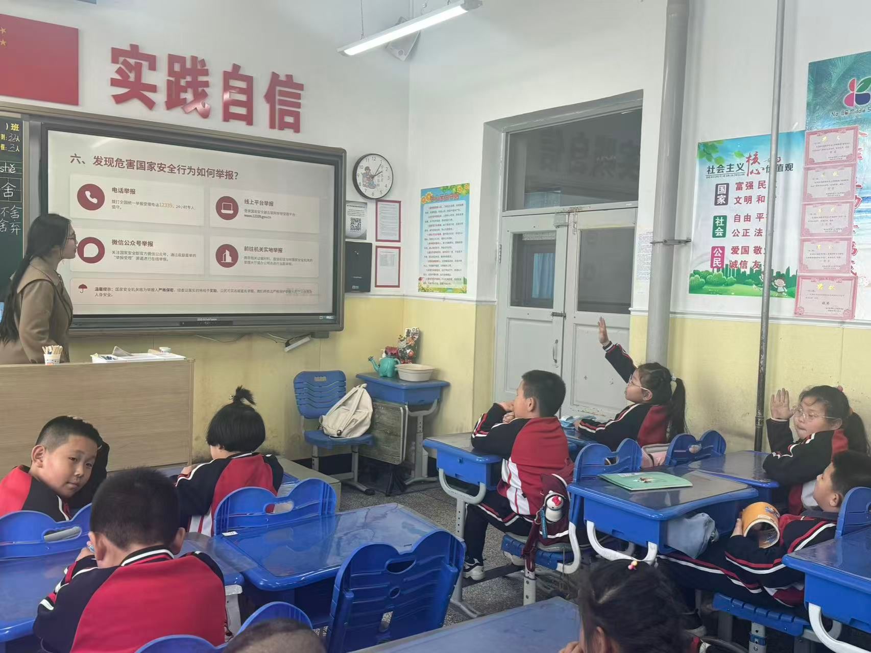 学院组织志愿者走进支教课堂,向中小学生普及国家安全知识,开展生态安全主题海报创作,以艺术形式传递国家安全理念。各团支部举办主题团日,传承红色基因、强化使命担当,并同步开展主题征文,以笔墨抒发守护国家安全的青春担当。