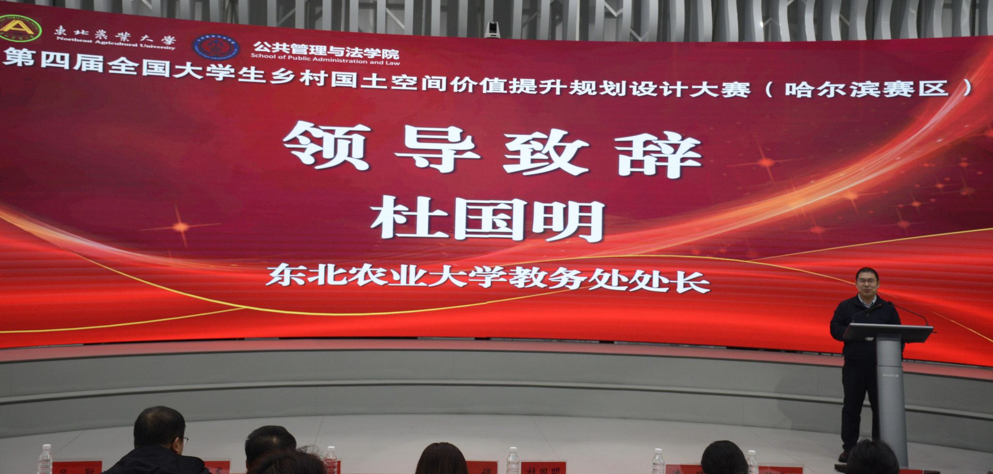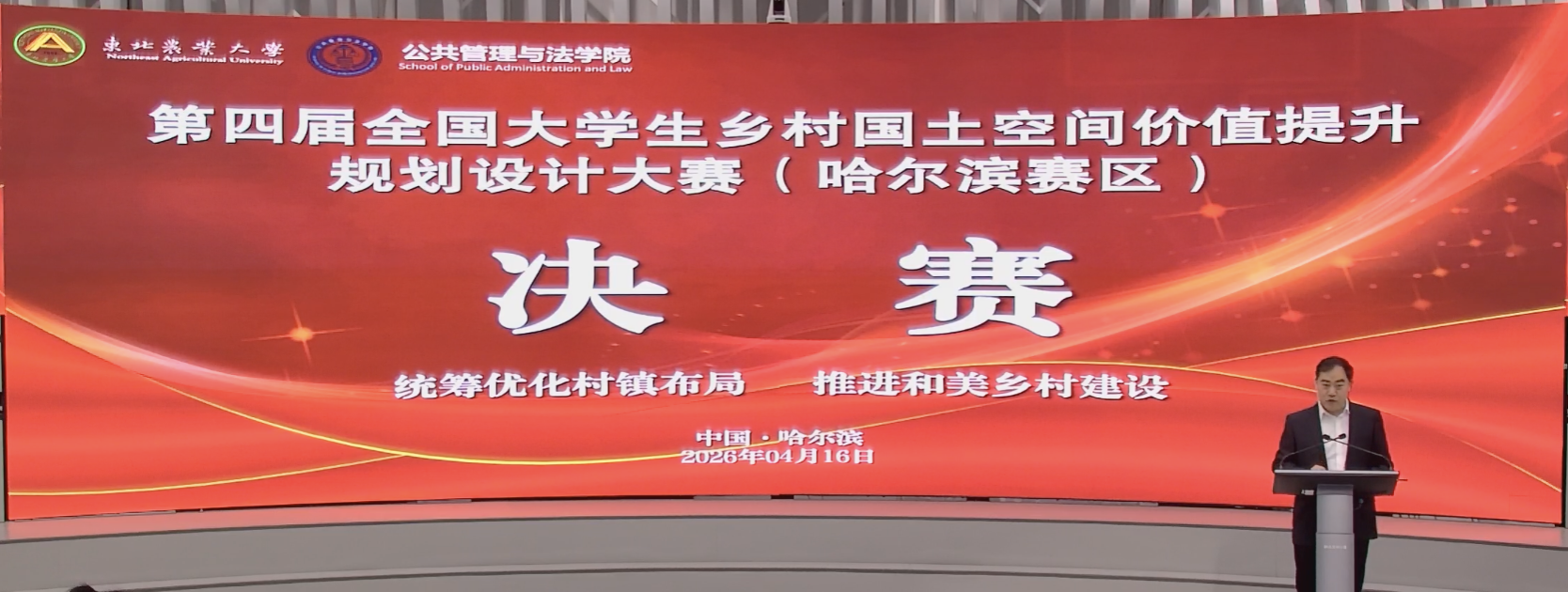 杜国明为大赛致辞。他指出,要坚持合理性原则,因地制宜、因村施策,避免“千村一面”,面向农业农村现代化科学编制东北地区乡村规划。同时,要充分展现东北地区的自然禀赋、人文底蕴和产业特色,让规划不仅有高度,更有温度、有辨识度。他勉励同学在人工智能时代要夯实自身的理论基础,持续提升学习能力,在规划编制过程中,不断锤炼认知能力、沟通能力和美学素养,努力成为一名合格的规划师。