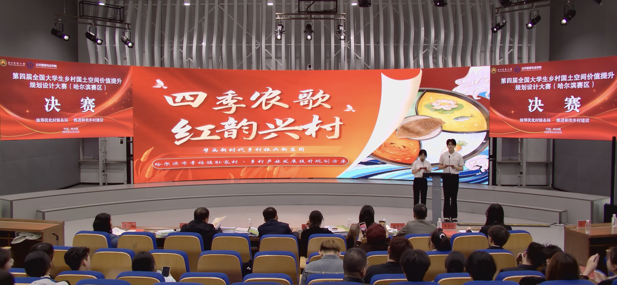 为全面贯彻落实党的二十大和二十届历次全会精神,积极响应国家乡村振兴战略,加快推动国土空间规划体系建设,鼓励大学生参与乡村规划设计实践,4月16日,以“统筹优化村镇布局、推进和美乡村建设”为主题的第四届全国大学生乡村国土空间价值提升规划设计大赛(哈尔滨赛区)决赛在我校举行。此次大赛由中国国土经济学会主办,我校公共管理与法学院、哈尔滨市城乡规划设计研究院、黑龙江国土空间规划学会和黑龙江省土地学会共同承办。本届大赛聚焦乡村国土空间价值提升相关内容的研究与规划设计,以我省哈尔滨市香坊区孙家村为规划范围开展规划设计。